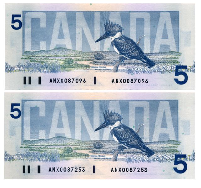 1986 Issue. BC-56cA-i. Bonin-Thiessen. No. ANX0087096 & ANX0087253. Both BCS graded CU-62. Lot of two (2) Replacement notes.