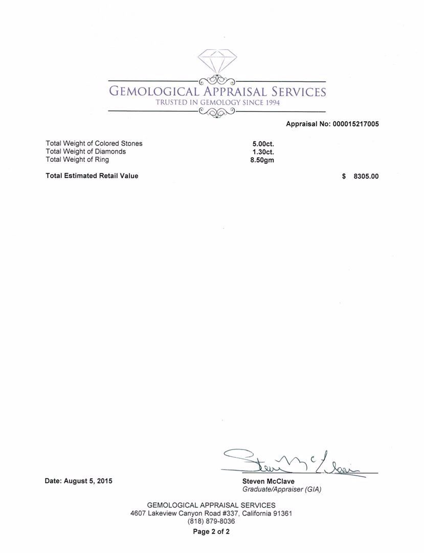 Regarding Appraised Jewelry, Watches and Loose Stones –