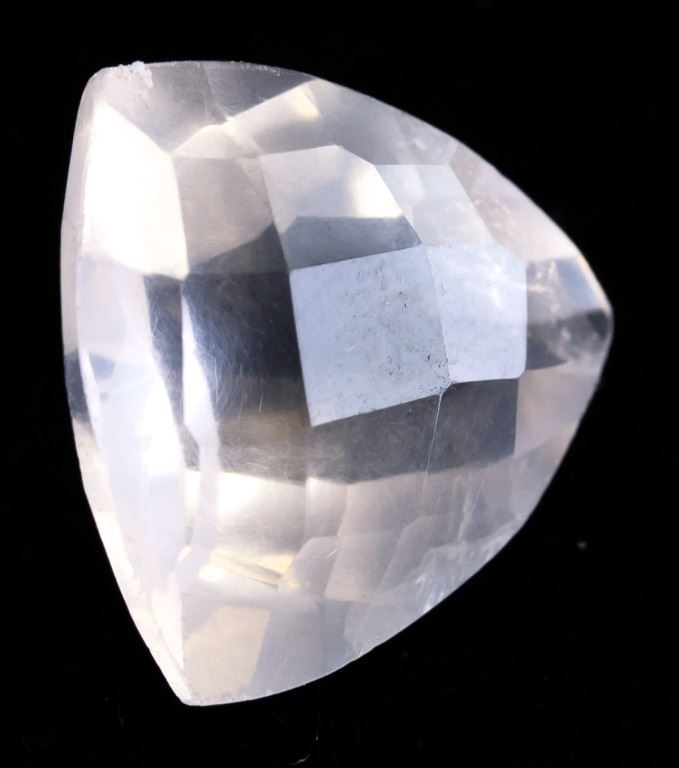 5.00 ct "traingular" cut light pink natural rose quartz. Accompanied with GLI certificate. 12.50 x 12.50 x 7.50 mm.