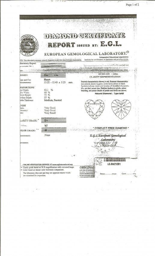 5.01 Carat Natural Heart Diamond Brilliant H, SI1 **|**|** EGL USA 5.01 Carat Natural Heart Diamond Brilliant H, SI1, Certified ; MSRP: $22000