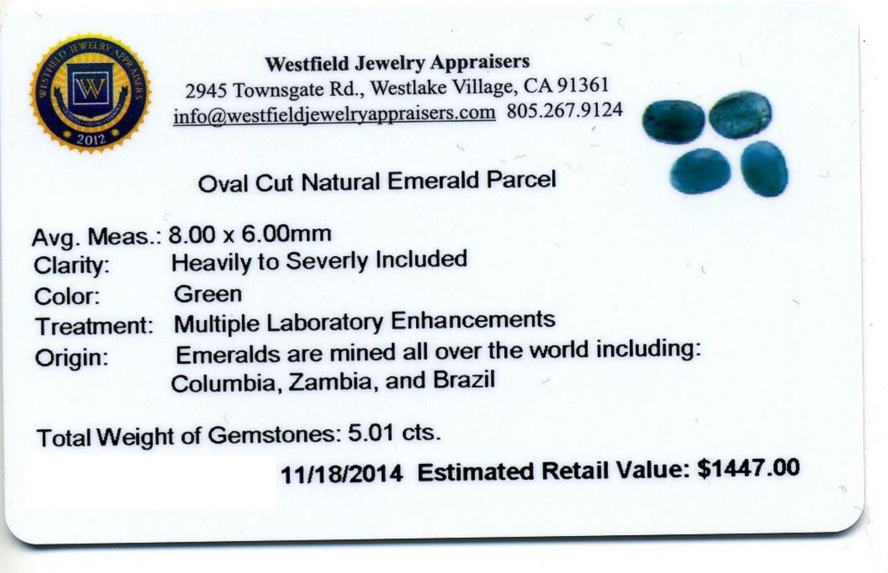 5.01cts. Oval Cut Natural Emerald Parcel Westfield Appraised.
