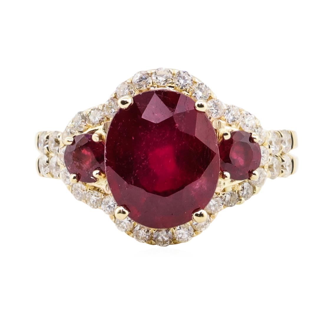 One 5.01ctw Ruby and Diamond Ring - 14KT Yellow Gold. IAS certified. See Appraisal for more details.