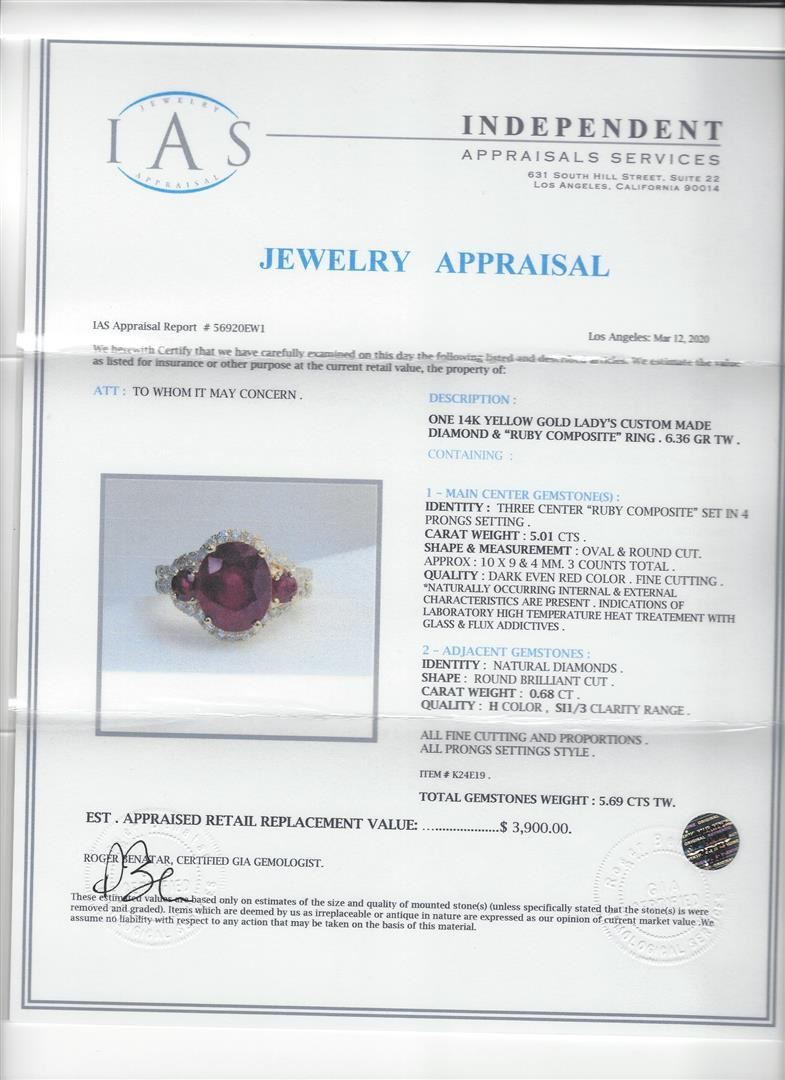 One 5.01ctw Ruby and Diamond Ring - 14KT Yellow Gold. IAS certified. See Appraisal for more details.