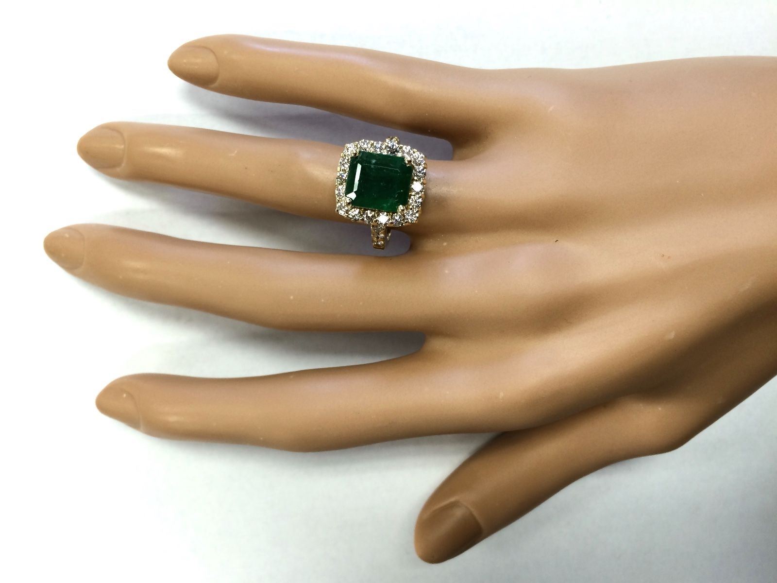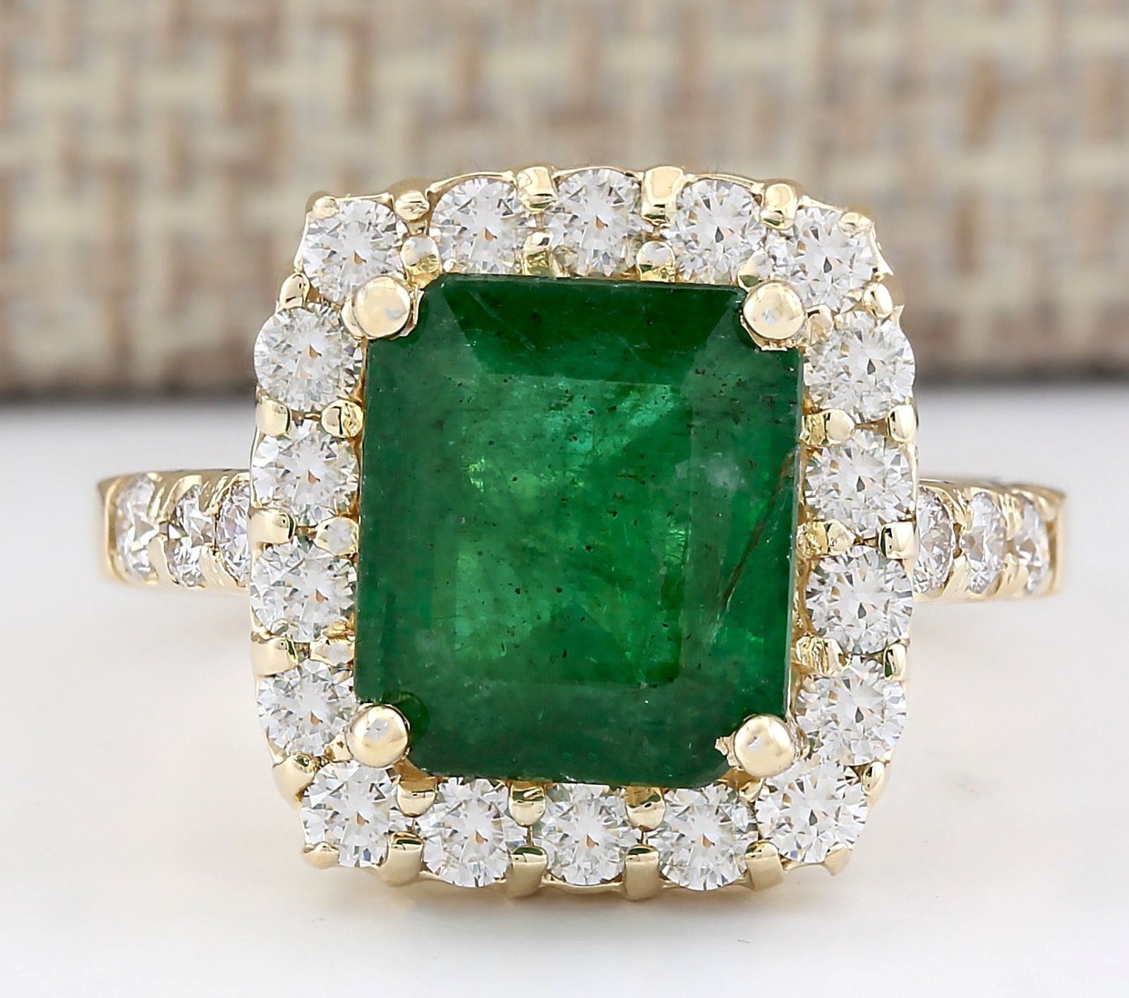 5.02 CTW Natural Emerald And Diamond Ring In 14k Yellow Gold