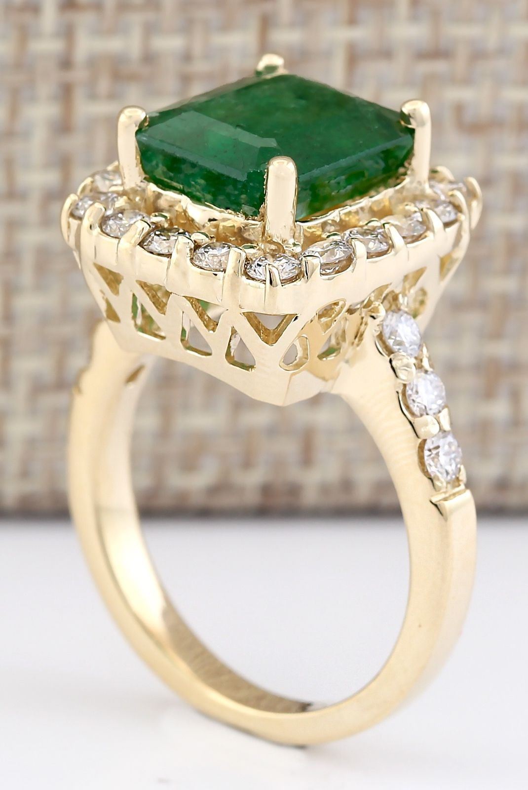 5.02 CTW Natural Emerald And Diamond Ring In 18K Yellow Gold