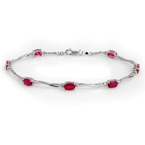 REF-36N8Y -10927 ---- 5.02 CTW Ruby & Diamond Bracelet 10K White Gold ---- Luxury Designer Brand Bracelet Appraised at $2,400 Certificate Number US10927 10k White gold, Bracelet Size is 7 Inches, Bracelet measuring approx. 7" x 1/8", weighing in total approx. 6.2 grams. Made in the USA and is stamped 10k, Main stone 5 carat total weight containing 7 pieces of Mid-Opaque-Deep Red color with AAA quality Oval shape cut Ruby , Stone #2 0.02 carat total weight containing 2 pieces of H-I color with VS/SI quality Round shape cut Diamond