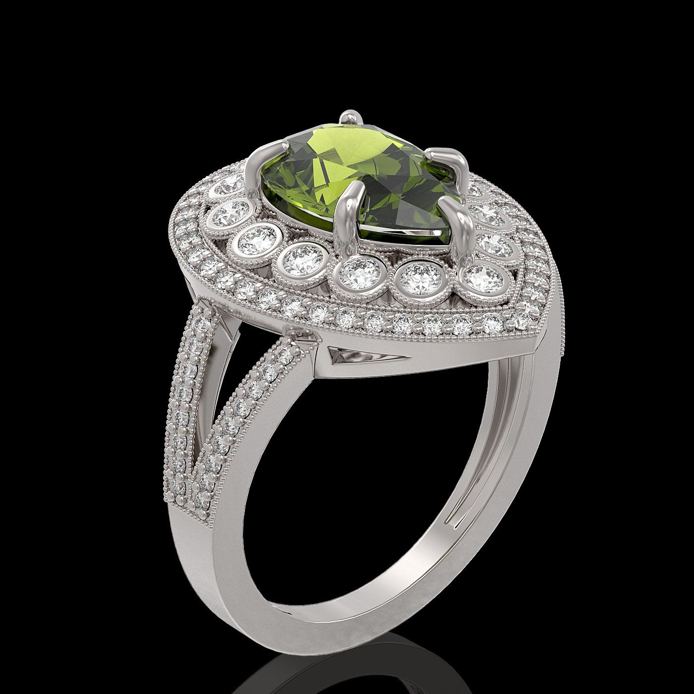REF-172R8K - SKU: 43139 ---- 5.02 ctw Certified Tourmaline & Diamond Victorian Ring 14K White Gold