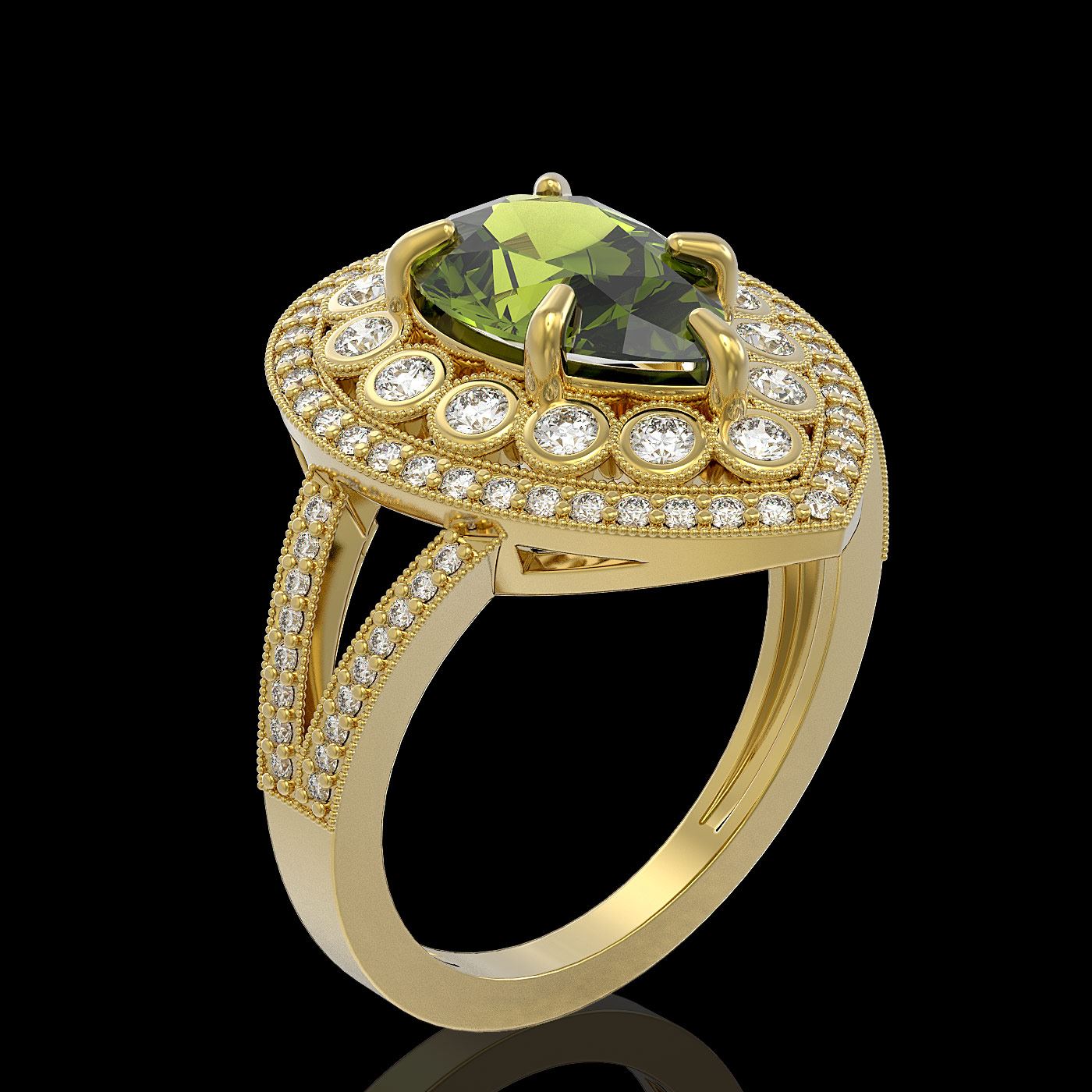 SKU: 43141 ---- 5.02 ctw Certified Tourmaline & Diamond Victorian Ring 14K Yellow Gold