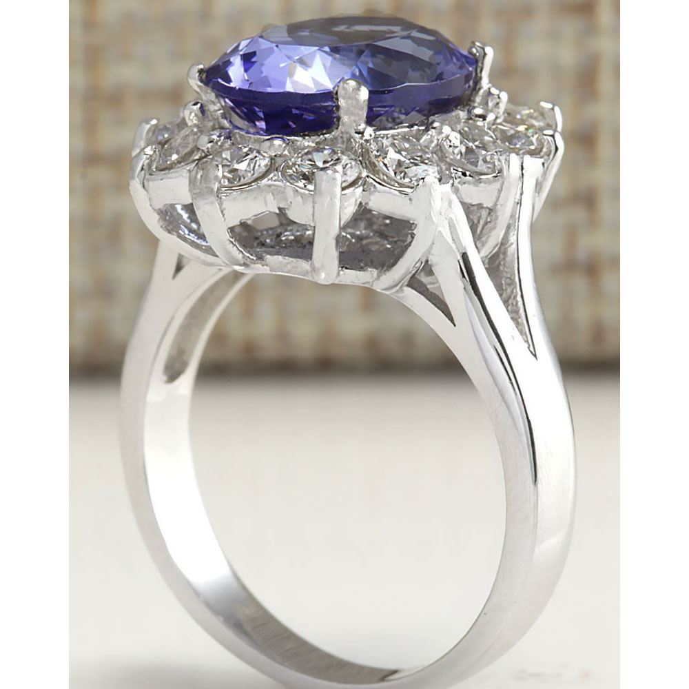 5.03 CTW Natural Tanzanite Diamond Ring 18K Solid White Gold