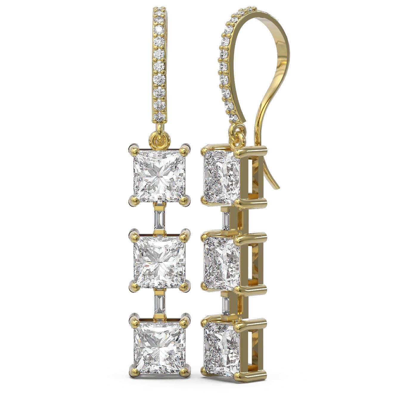 5.03 ctw Princess Diamond Earrings 18K Yellow Gold