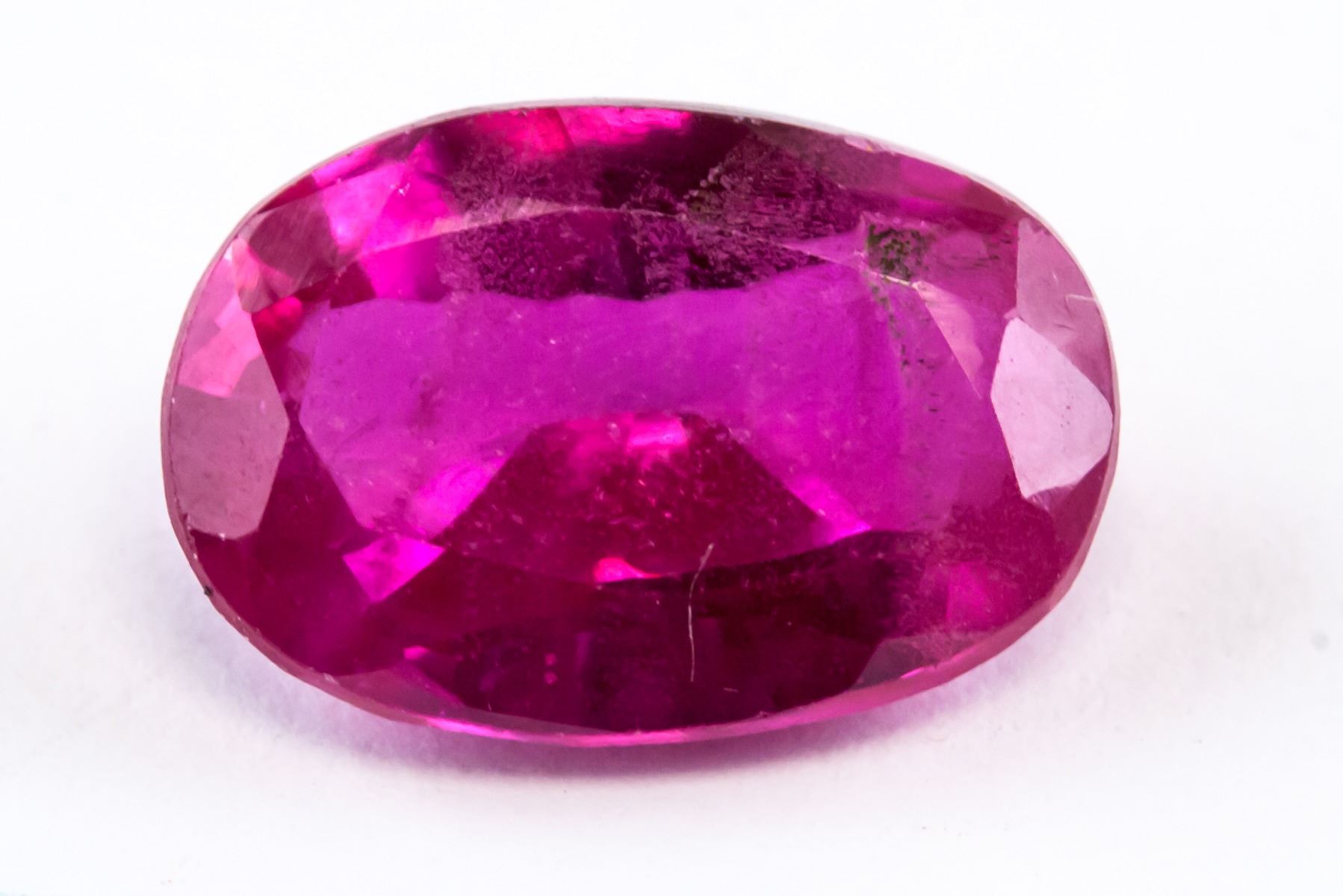5.03 pink ruby gemstone. Oval cut. 12.47 x 8.57 x 5 mm. Density: 4.15