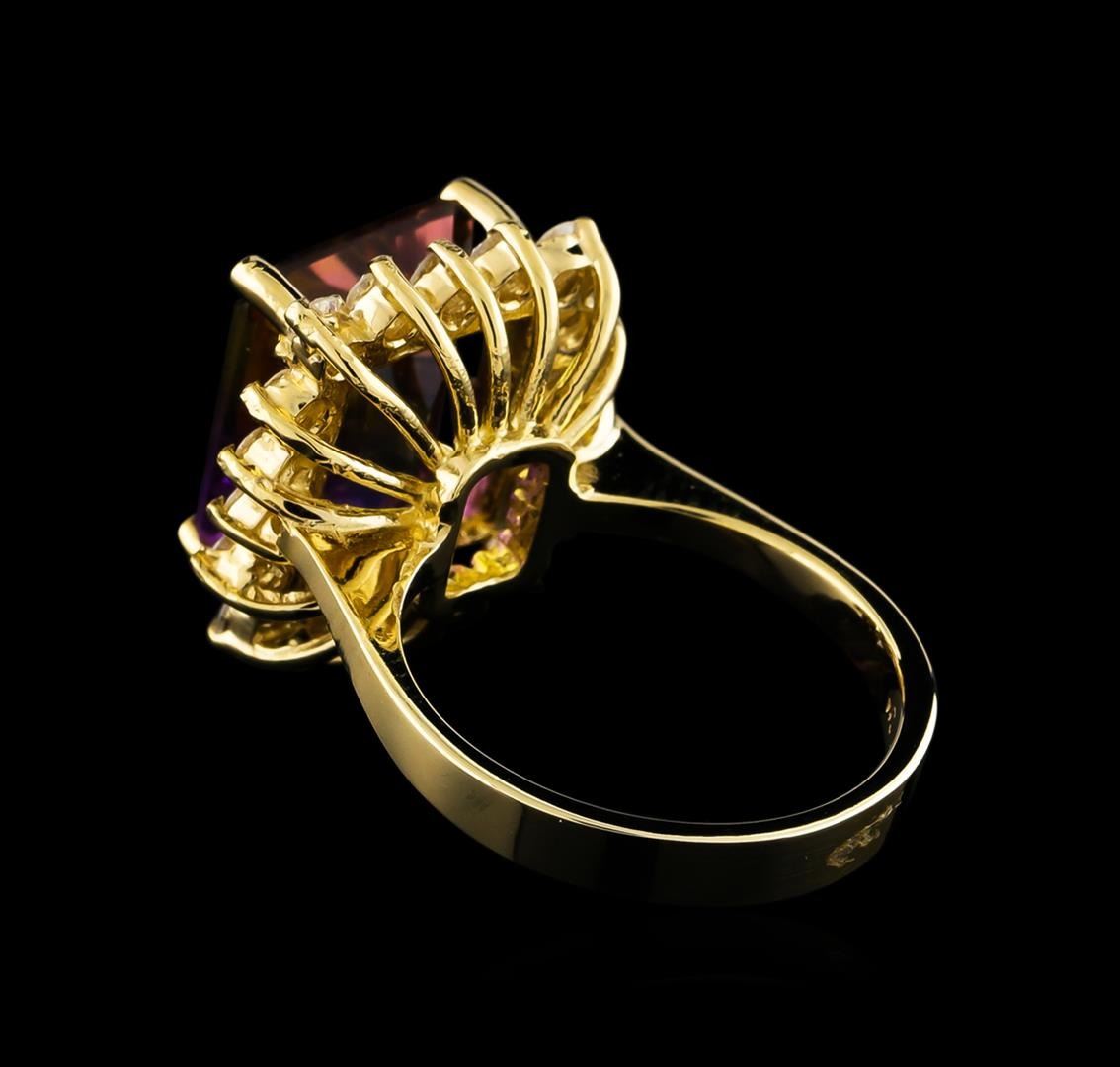 One ring featuring: 14KT yellow gold weighing 5.78 grams containing one ametrine with a total weight of 5.04ct and side diamonds with a total weight of 0.58ct.