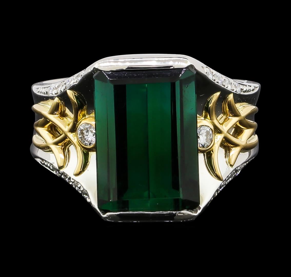One ring featuring: Platinum and Yellow Gold containing Tourmaline with a total weight of 5.04ct and Diamonds with a total weight of 0.18ct. Total Weight of Ring: 11 grams.