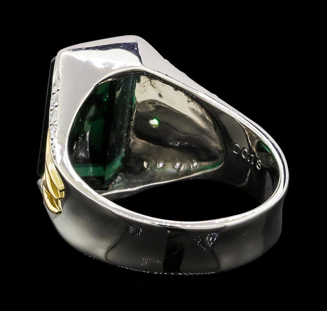 One ring featuring: Platinum and Yellow Gold containing Tourmaline with a total weight of 5.04ct and Diamonds with a total weight of 0.18ct. Total Weight of Ring: 11 grams.