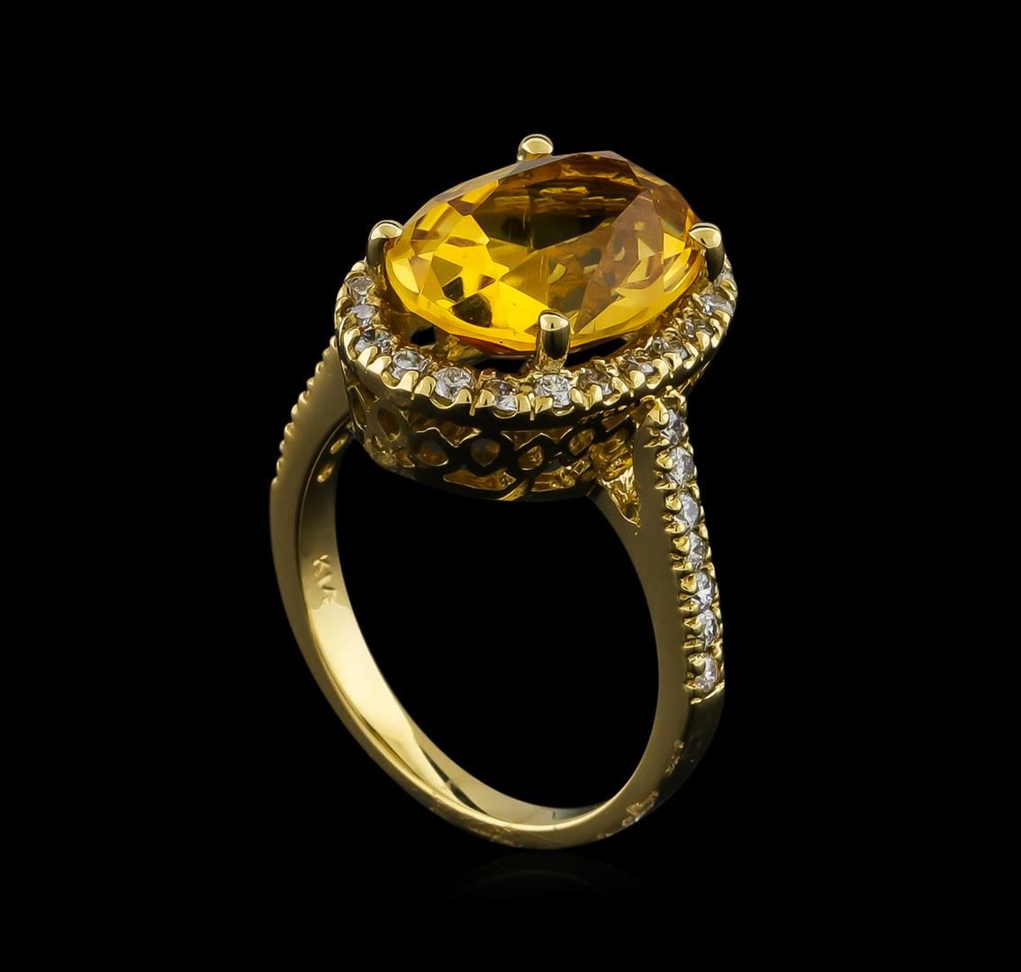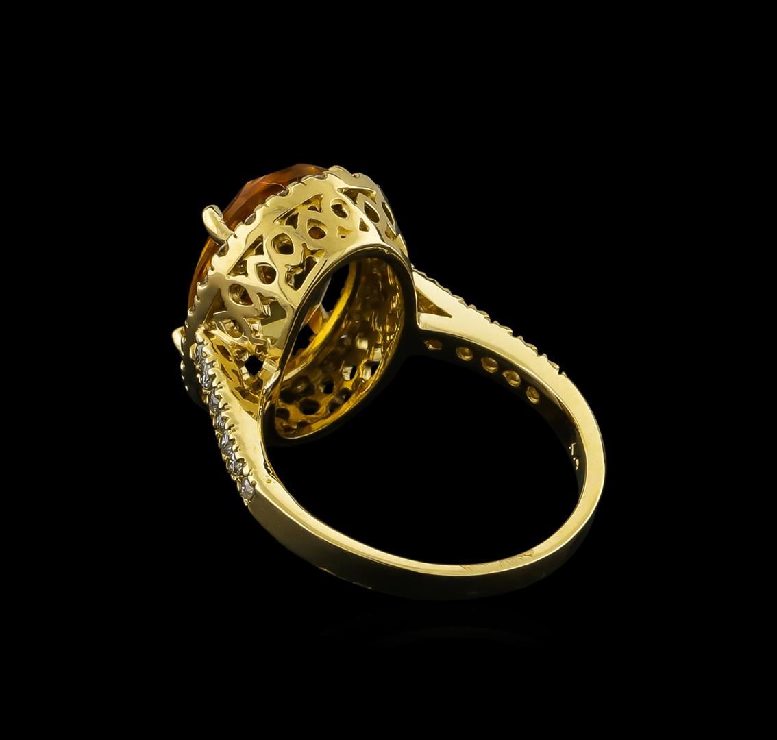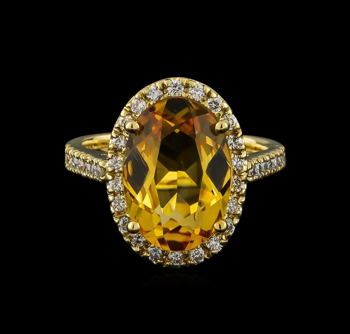 One Ring featuring: 14KT Yellow Gold weighing 5.1 grams containing one Citrine center stone with a total weight of 5.04ct and Diamonds with a total weight of 0.54ct.