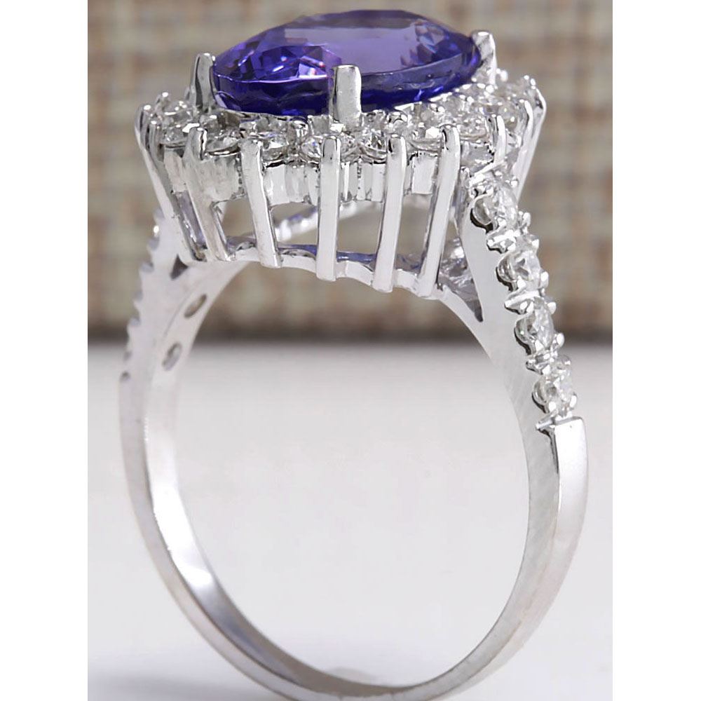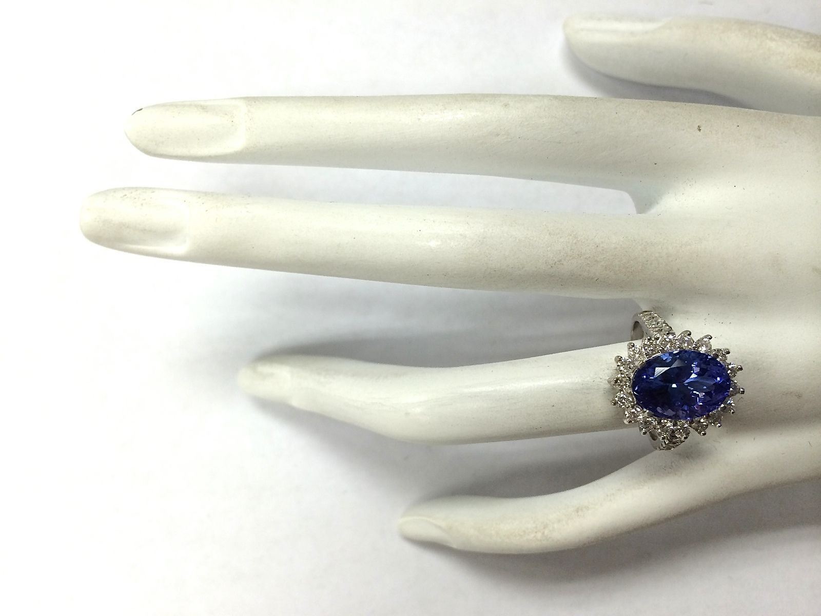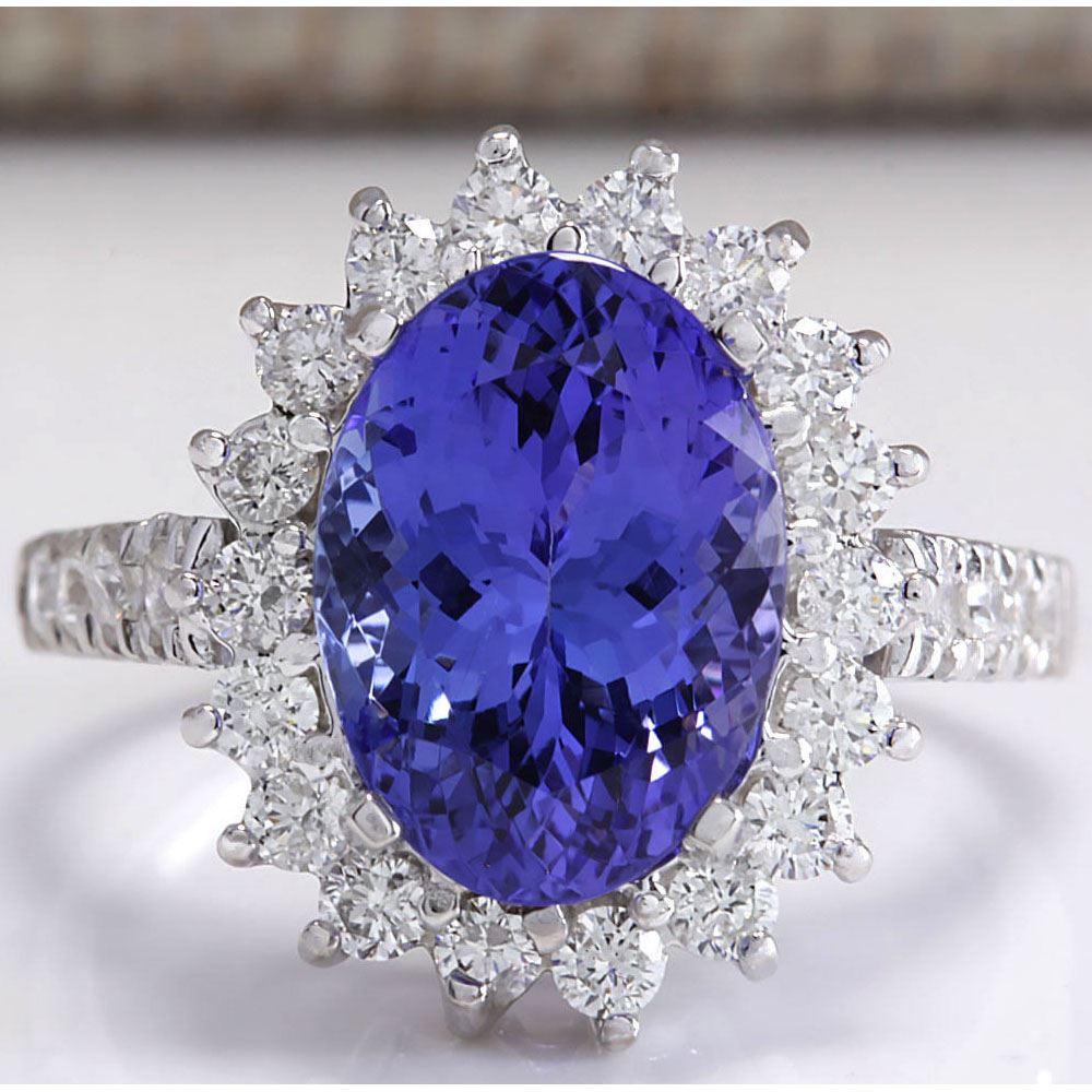 5.08 CTW Natural Blue Tanzanite And Diamond Ring In 14K White Gold