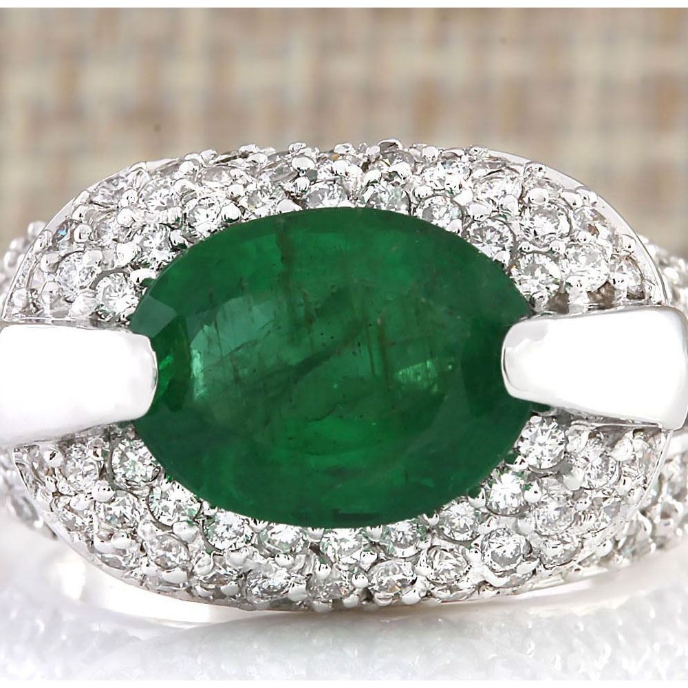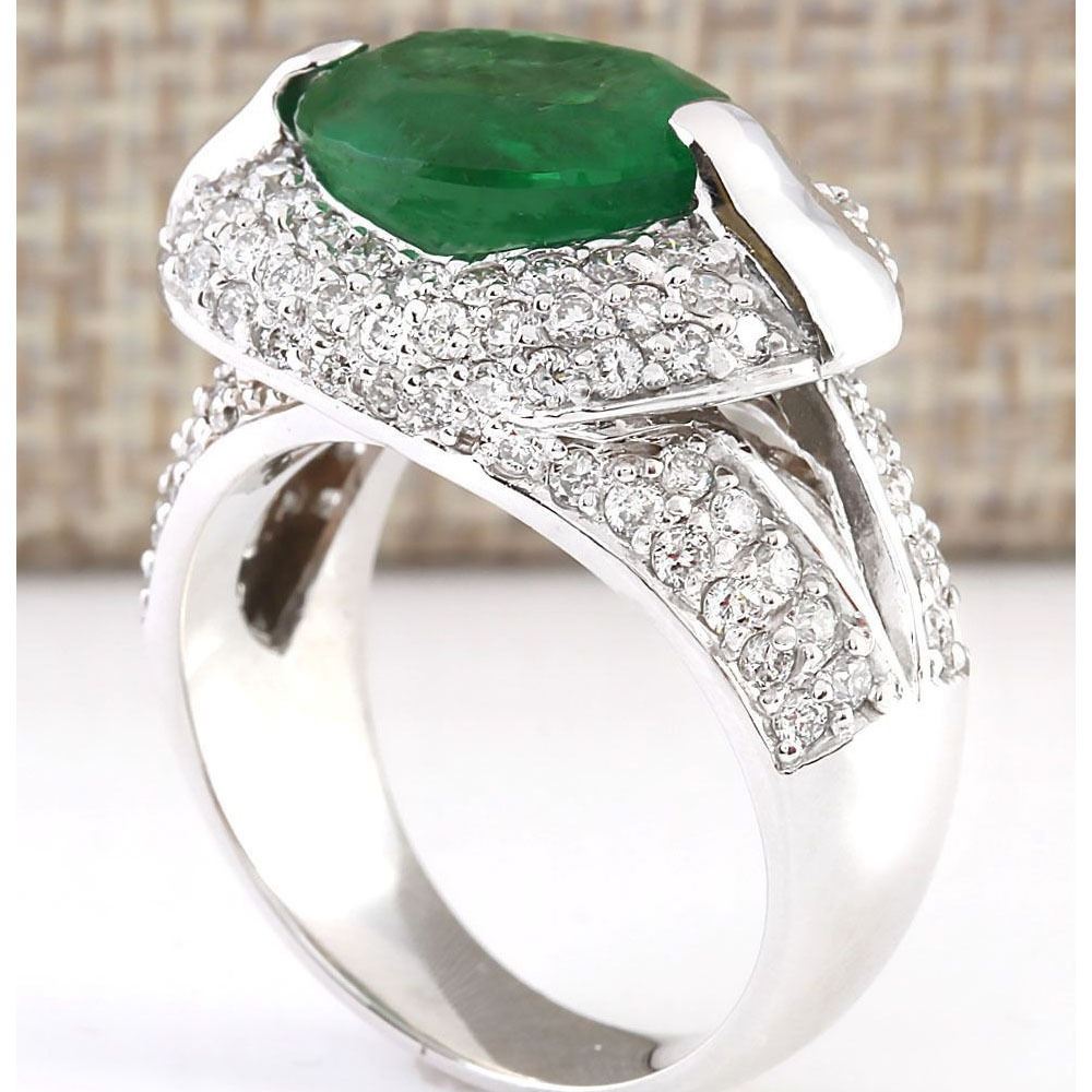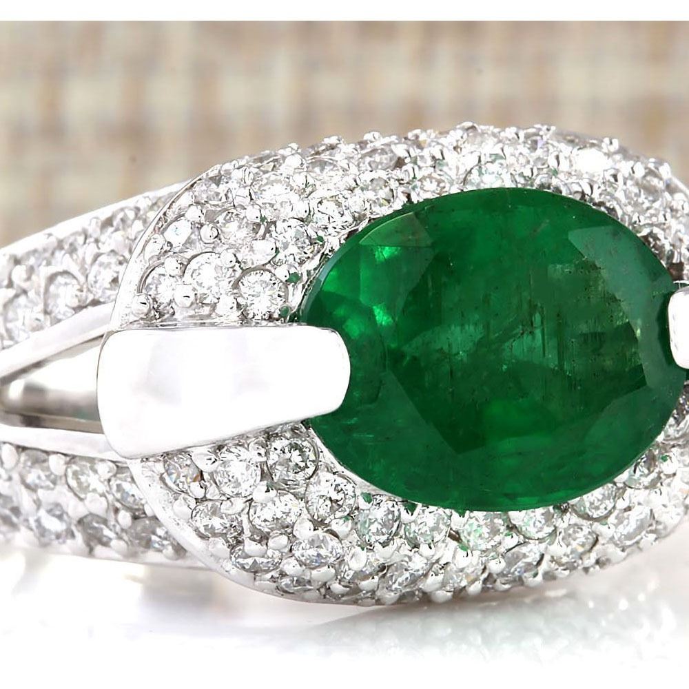 5.08 CTW Natural Emerald And Diamond Ring In 18K White Gold