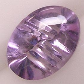 OVAL SHAPED LASER CUT AMETHYST. IT WEIGHTS 5.09 CTS AND MEASURES 14x10 MM.