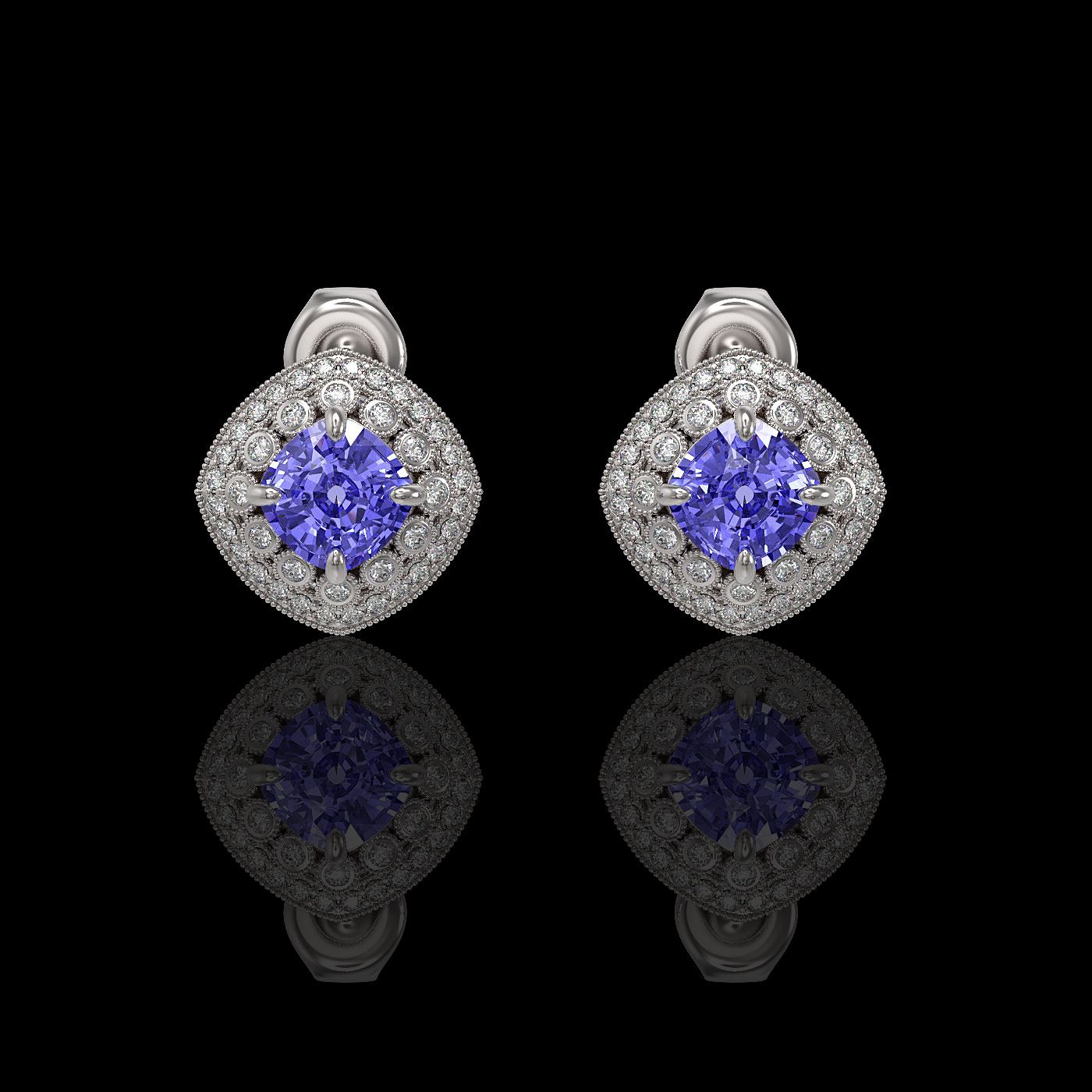 REF-152K5Y - SKU: 44129 ---- 5.09 ctw Tanzanite & Diamond Victorian Earrings 14K White Gold