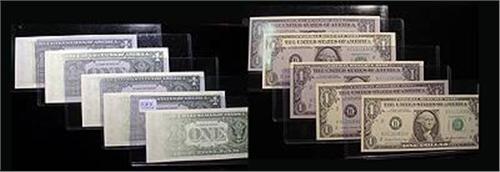 (5) $1.00 FRN Currency Error - Insufficient Ink on all 5 Notes on Reverse