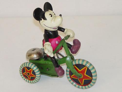 5 1/2" CELLULOID MICKEY MOUSE ON TRICYCLE TIN WIND-UP TOY - EXCELLENT CONDITION W/ ONLY MINOR IMPERFECTIONS