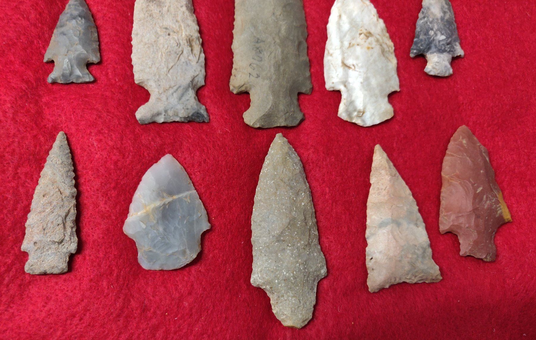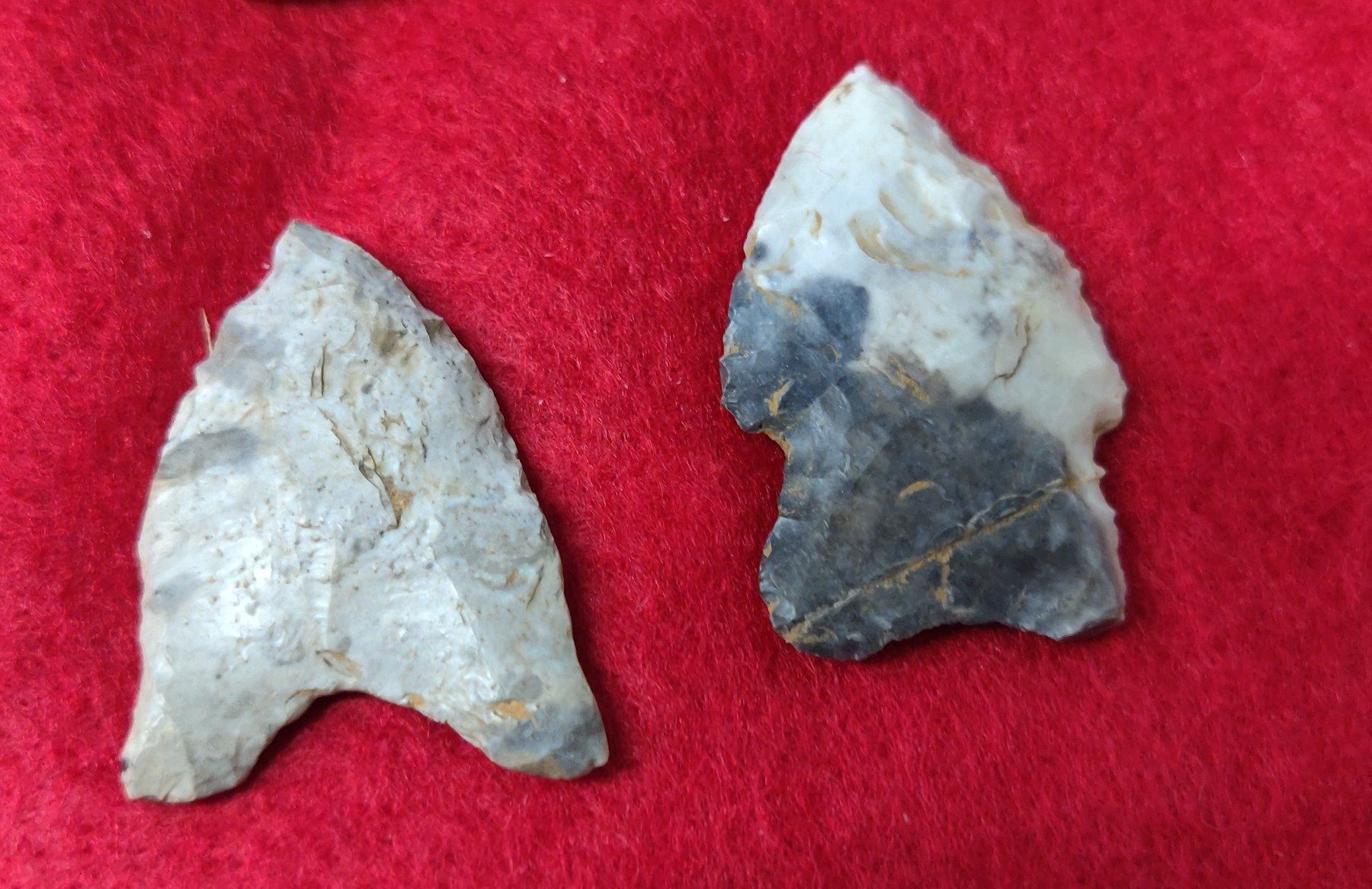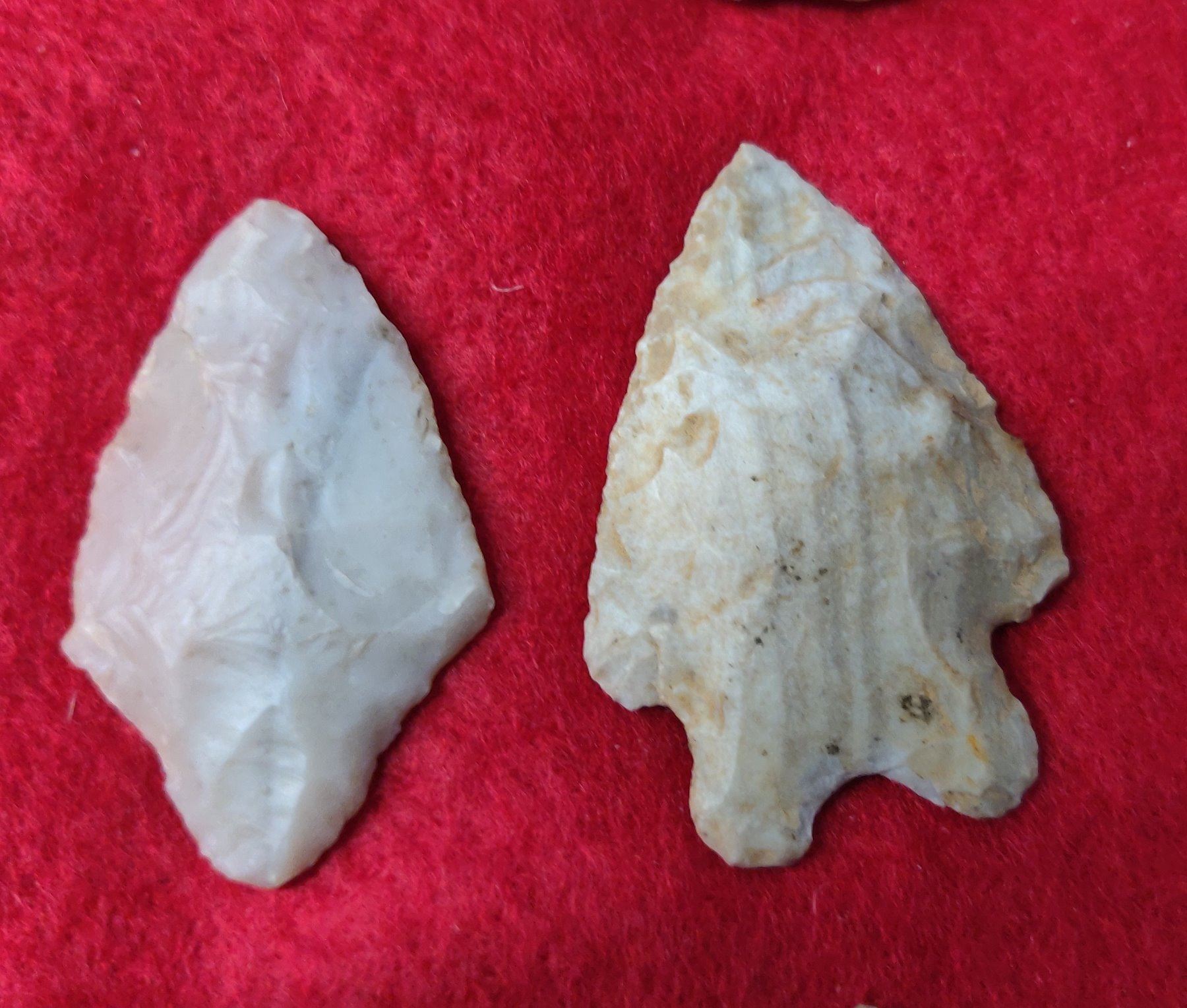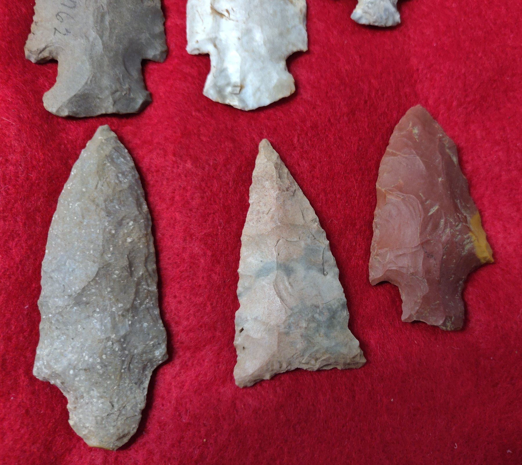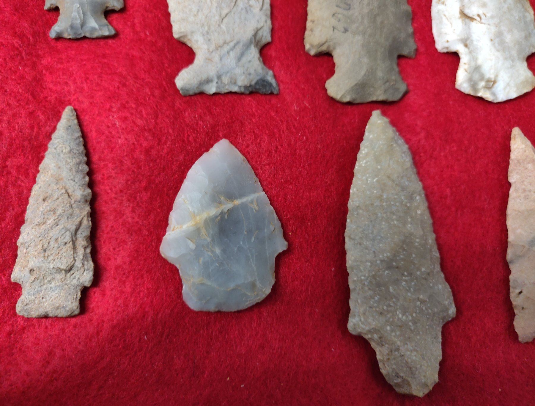 5 1/2" Hardin Spear + Collection, pre-historic items. Made of chert and steatite stone, the longest item measures 5 1/2". Ex-Payne Collection, Indiana. 22 piece collection, frame not included. Found in 1935. Condition: Minor chips, as found, see images. Shipping: $30.00 USA estimate only, w/insurance and signature, due to value and weight.