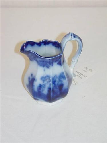 5 1/2" SCINDE FLOW BLUE CREAMER BY ALCOCK - SMALL RIM REPAIR TO BASE & SPOUT;