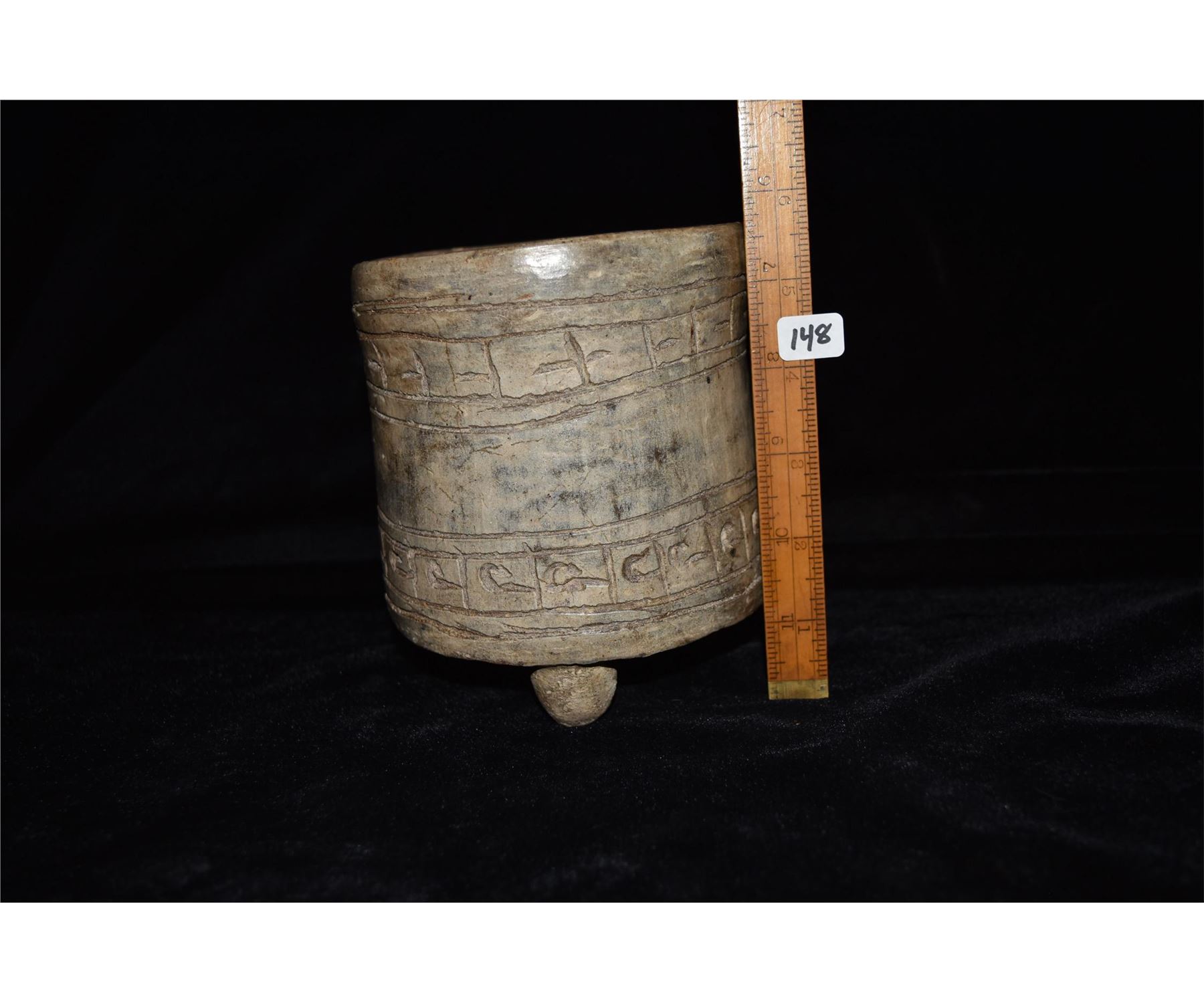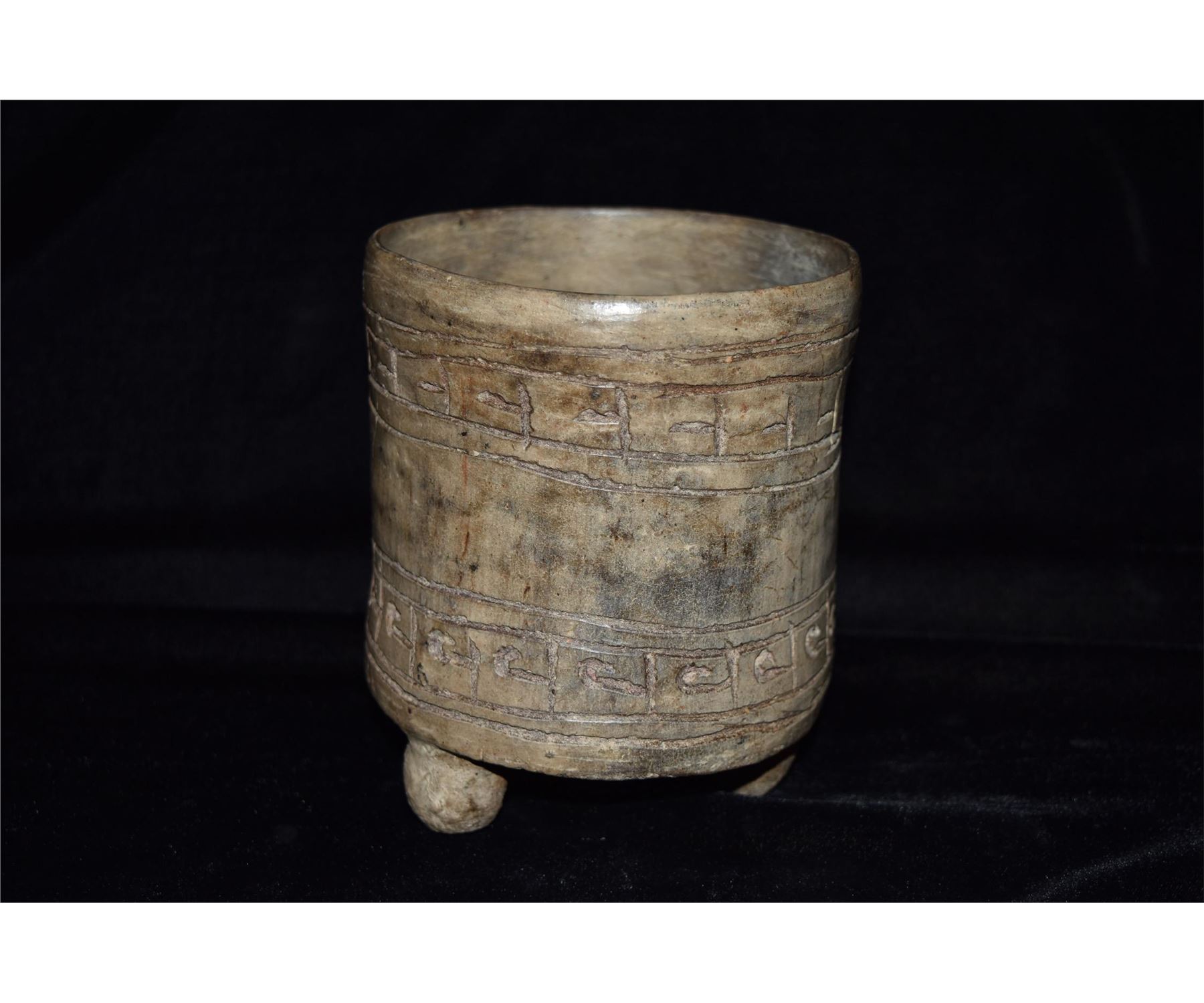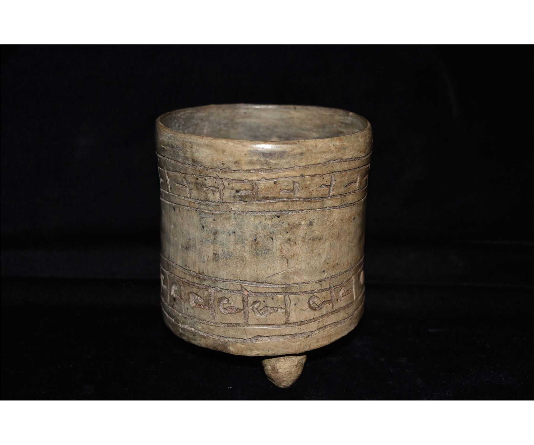5 1/2" Tall Mayan Tri Leg Vessel, Outstanding Carved