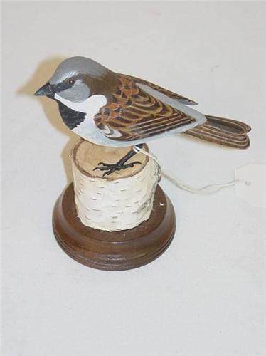 5 1/4" CARVED & PAINTED BIRD "SPARROW" SIGNED GORDON R. HARDE;