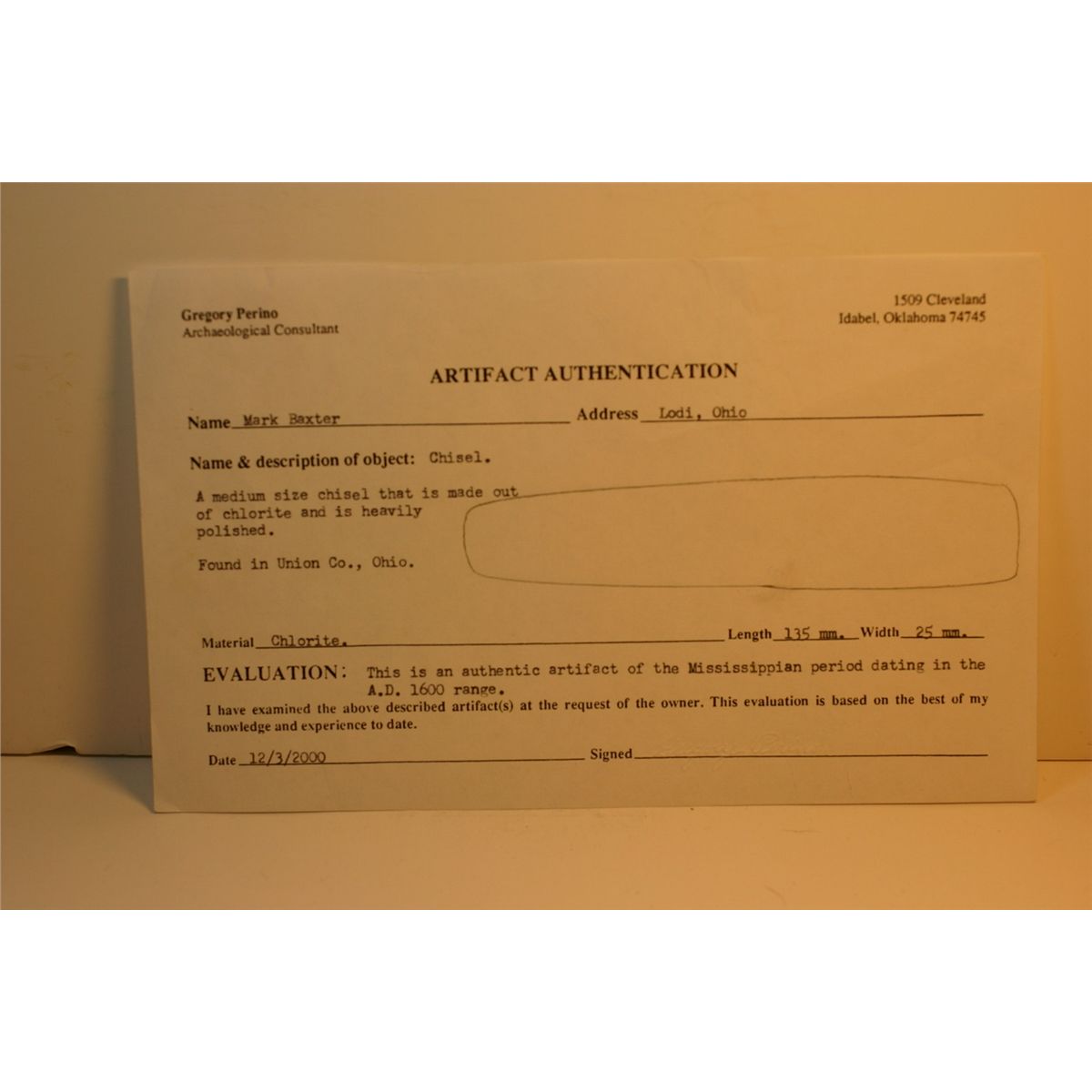 5 1/4" Ohio Chisel w/Perino COA