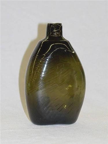 5 1/4" PITKIN FLASK - DEEP OLIVE GREEN W/ PONTIL;