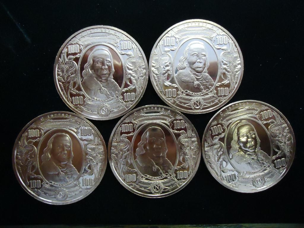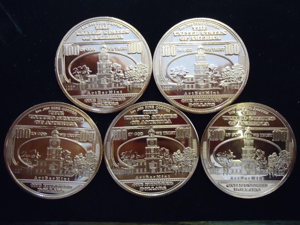 5 1 OUNCE ADVP COPPER ROUNDS ($100 BANK NOTES)