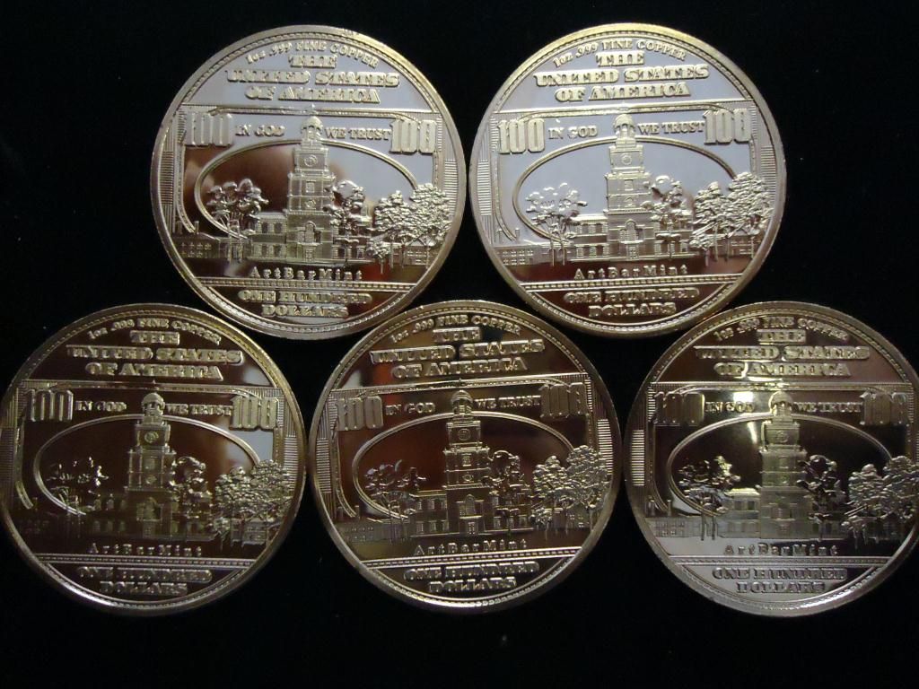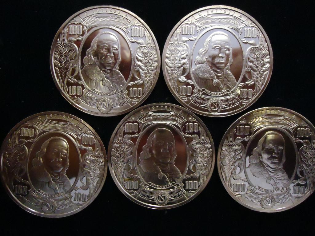 5- 1 OUNCE ADVP COPPER ROUNDS ($100 FRANLIN NOTES)