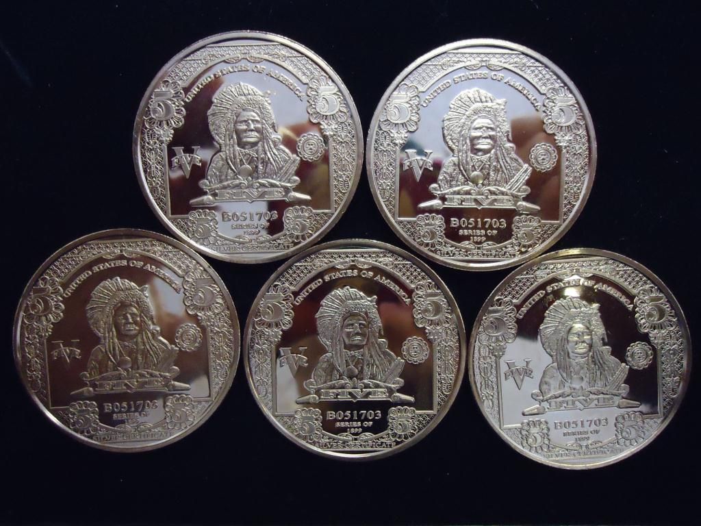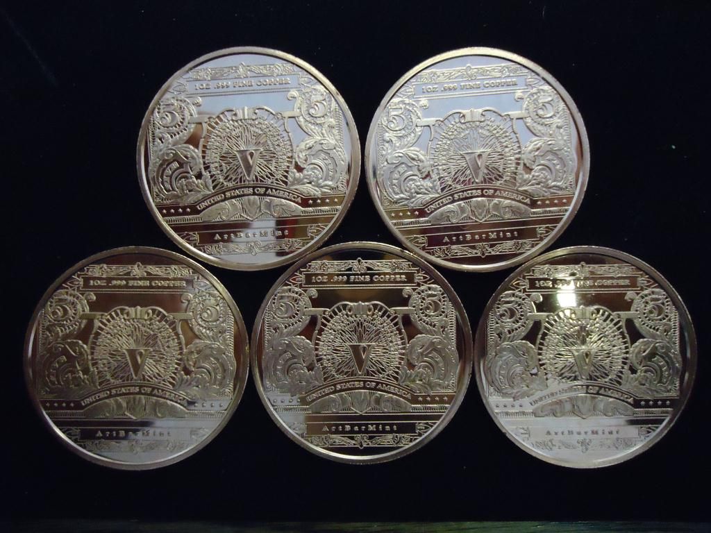 5 1 OUNCE ADVP COPPER ROUNDS ($5 BANK NOTE SERIES)