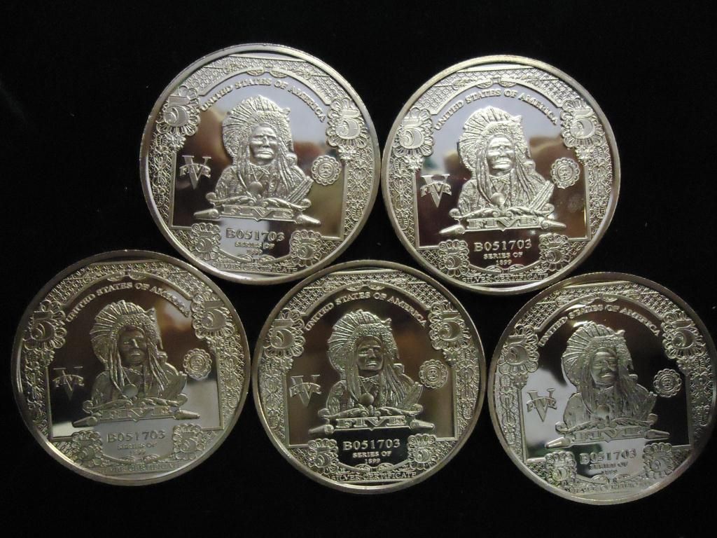 5 1 OUNCE ADVP COPPER ROUNDS ($5 BANK SERIES)