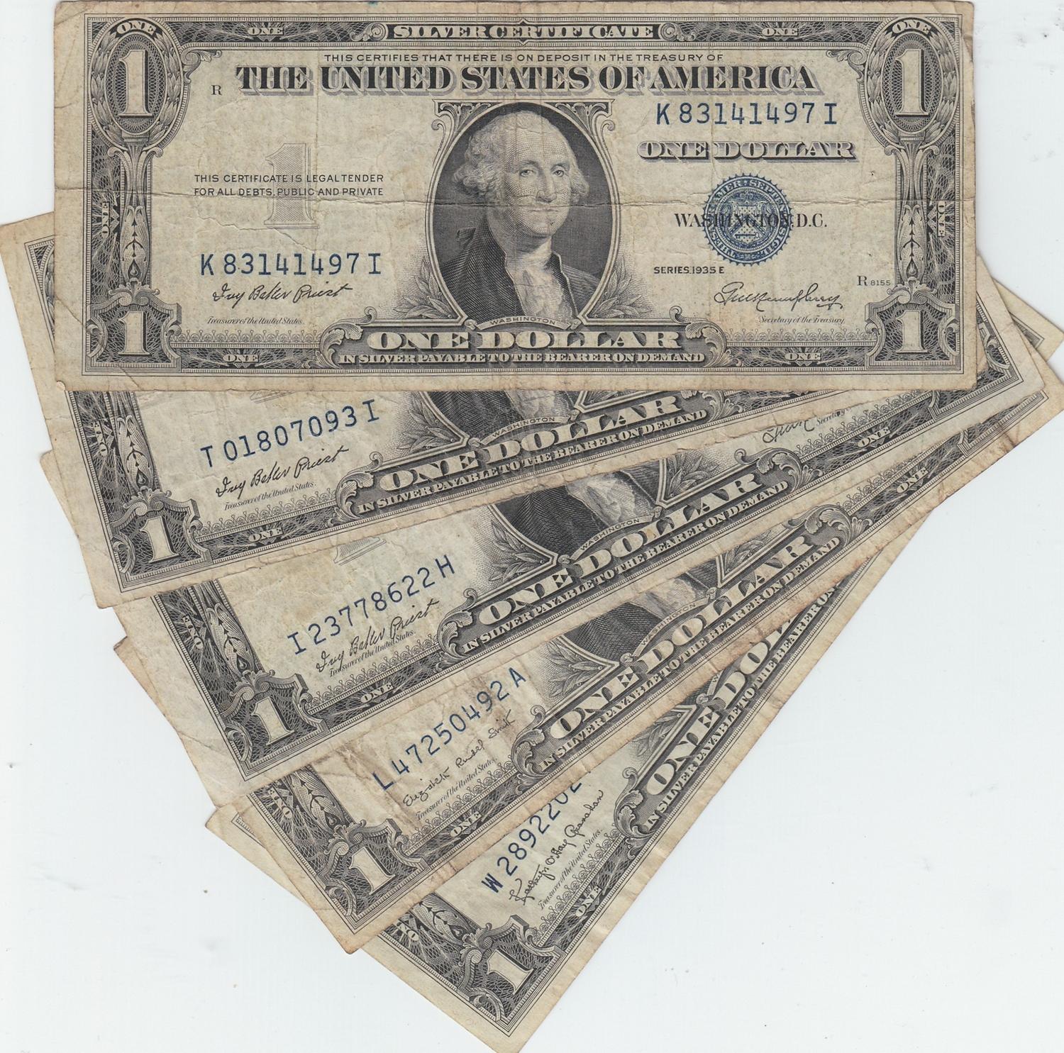5 $1 SILVER CERTIFICATES 1935 & 1957