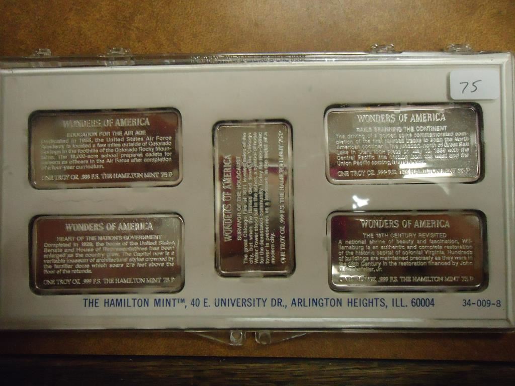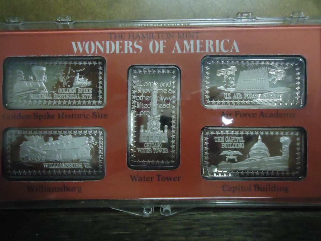 5-1 TROY OZ .999 FINE SILVER INGOTS HAMILTON MINT GOLDEN SPIKE HISTORIC SITE, WILLIAMSBURG, AIR FORC