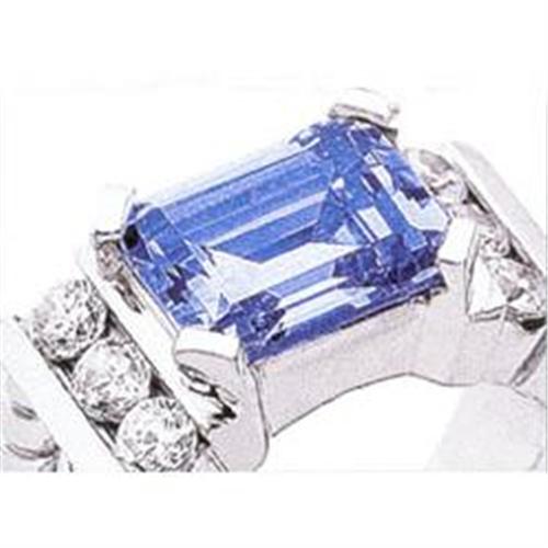 This is a gorgeous 5.10 carat Emerald cut sapphire & diamond White Gold ring.<p>