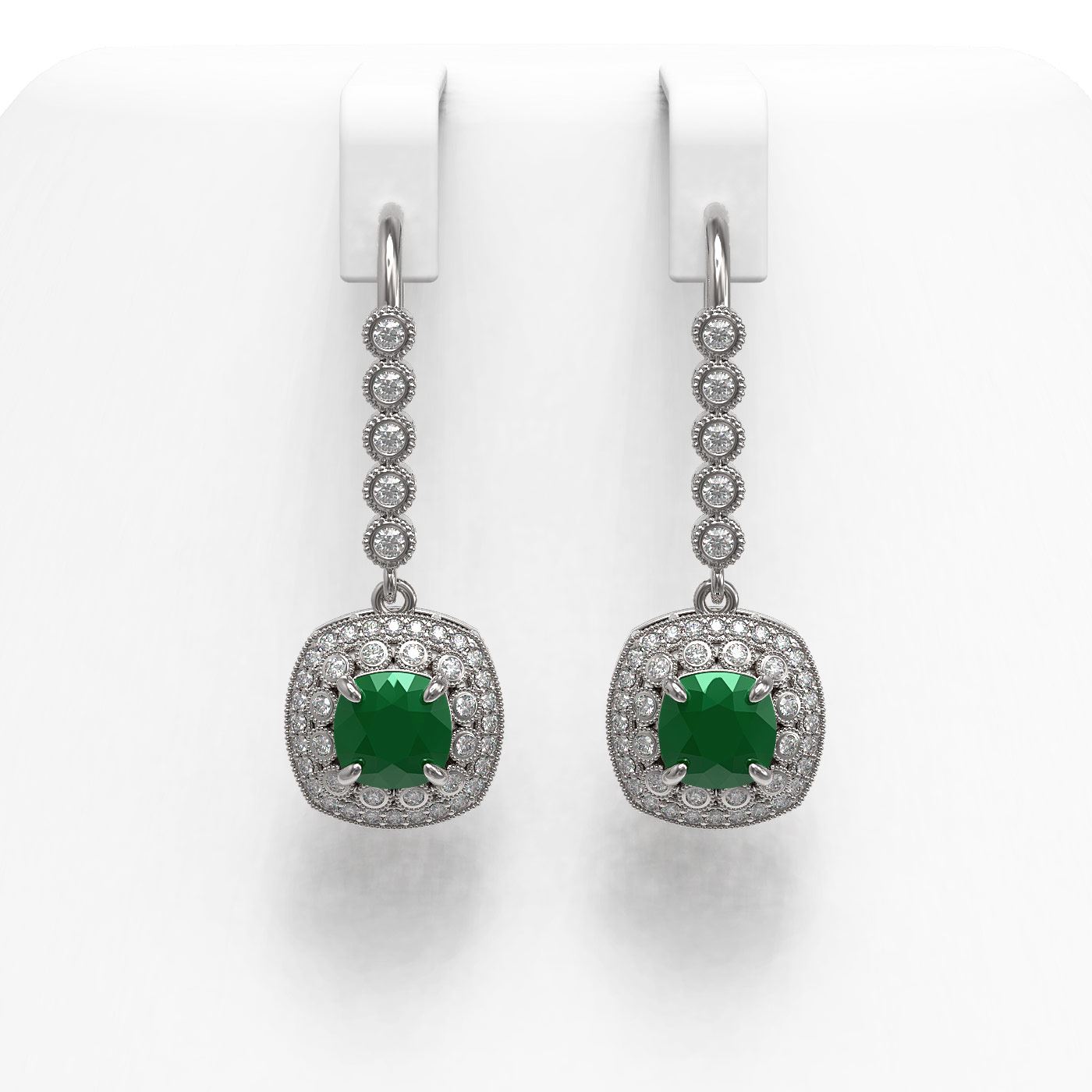 REF-172H8R - SKU: 44048 ---- 5.1 ctw Certified Emerald & Diamond Victorian Earrings 14K White Gold