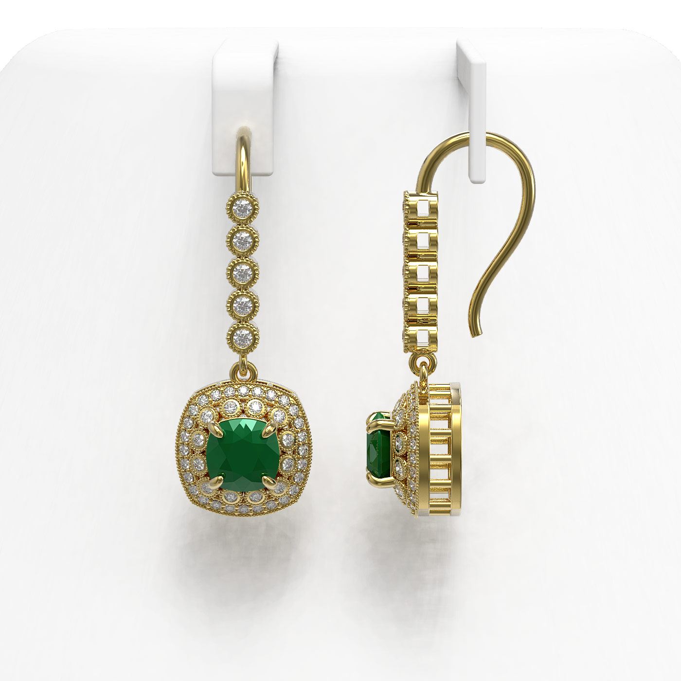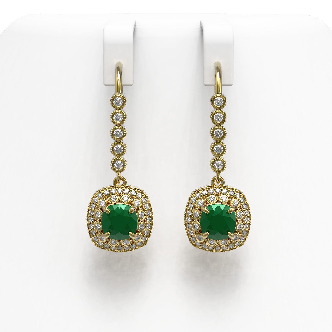 REF-172X8A - SKU: 44050 ---- 5.1 ctw Certified Emerald & Diamond Victorian Earrings 14K Yellow Gold