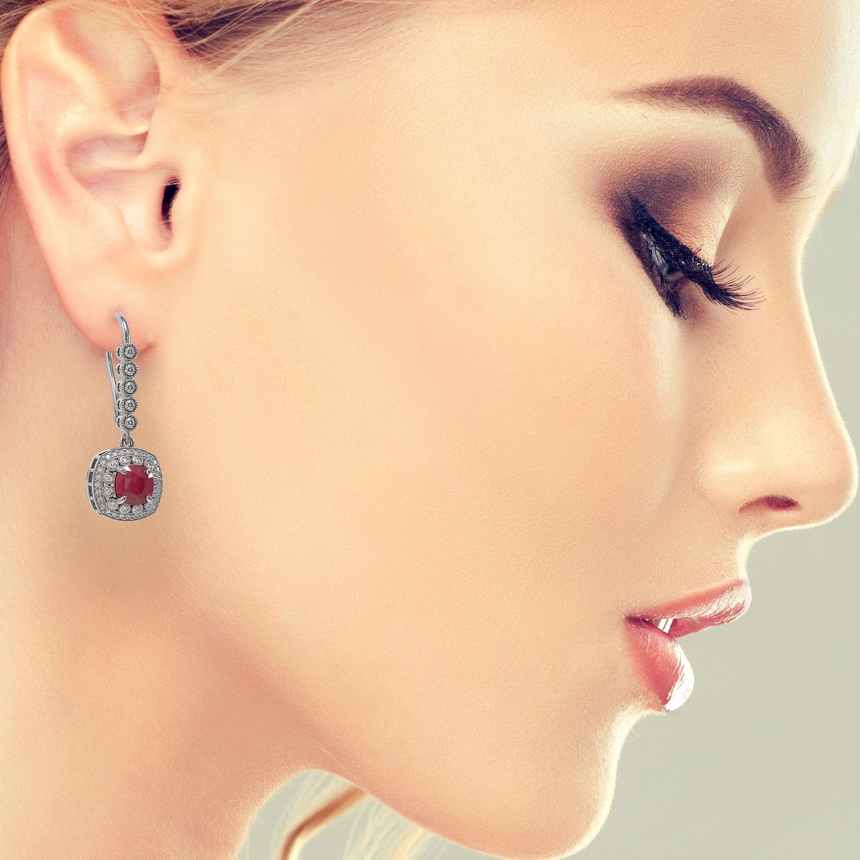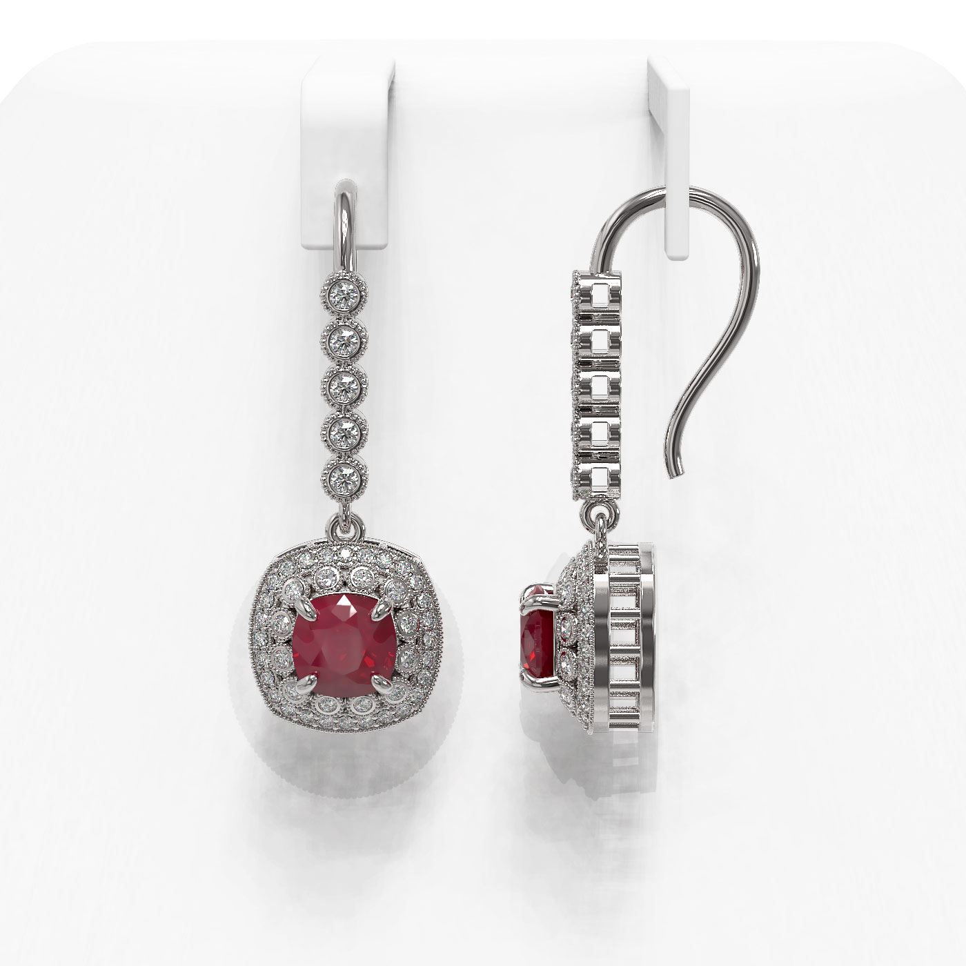 REF-172F8M - SKU: 44051 ---- 5.1 ctw Certified Ruby & Diamond Victorian Earrings 14K White Gold