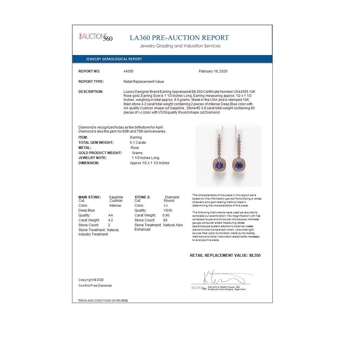 REF-172A8N - SKU: 44055 ---- 5.1 ctw Certified Sapphire & Diamond Victorian Earrings 14K Rose Gold