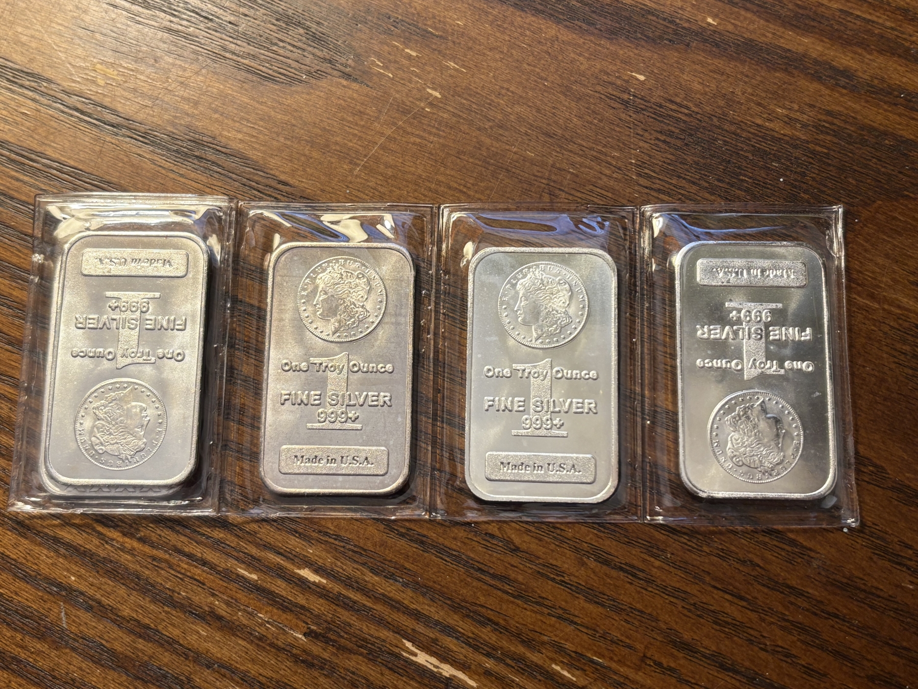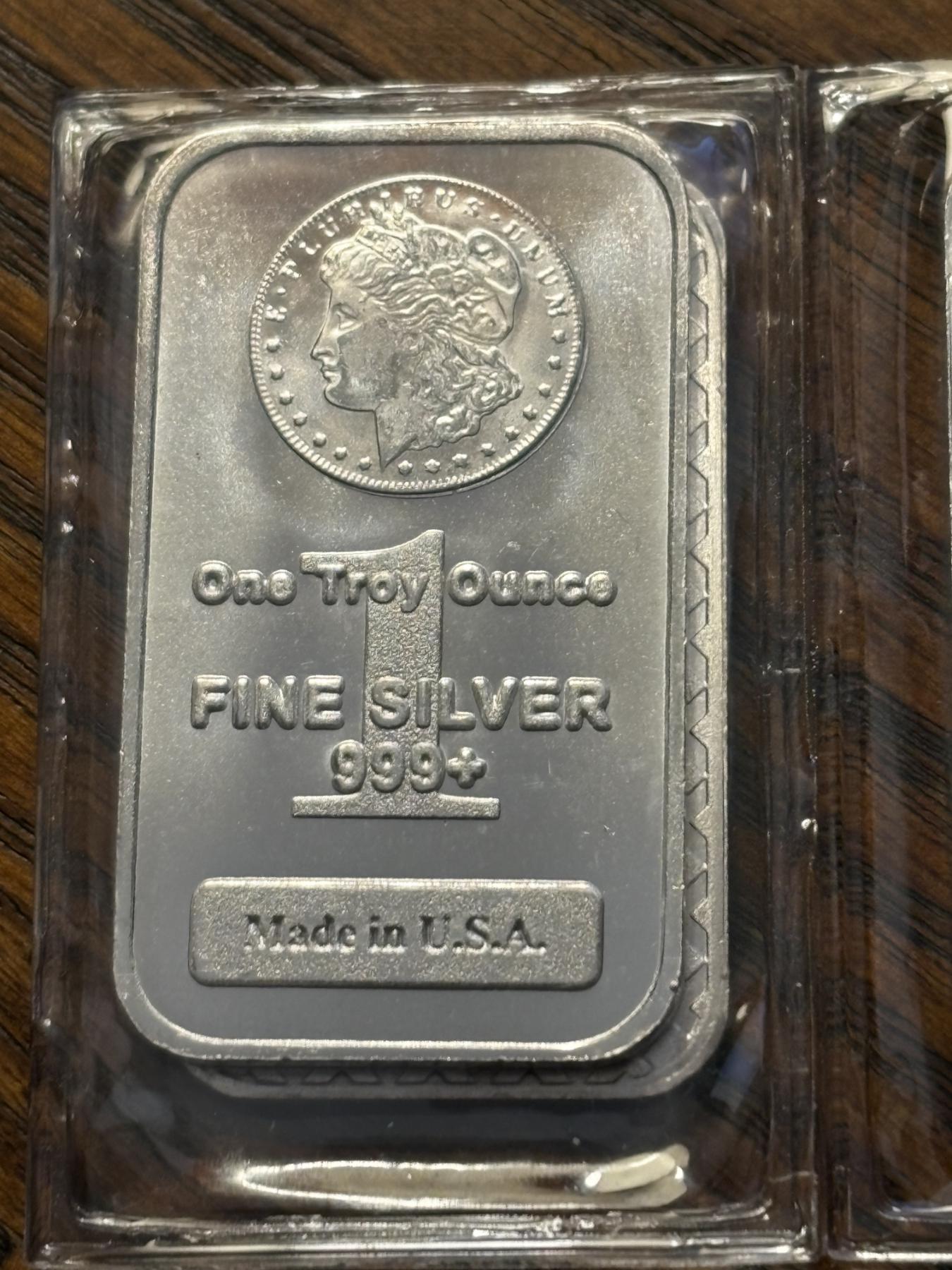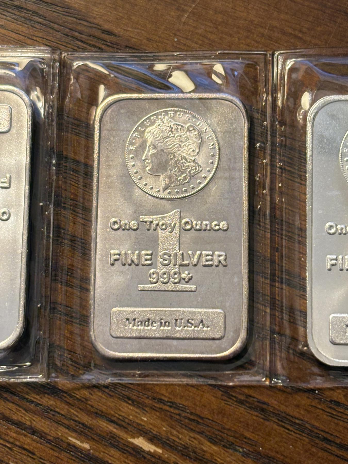 (5) 1 oz Morgan Design silver bar - .999 Fine Silver - In Sealed Plastic Packaging