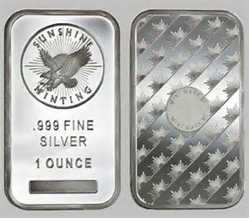 (5) 1 oz. Sunshine Mint Bars- .999 Pure