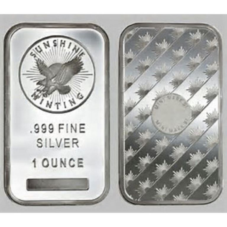 (5) 1 oz. Sunshine Mint Bars- .999 Pure
