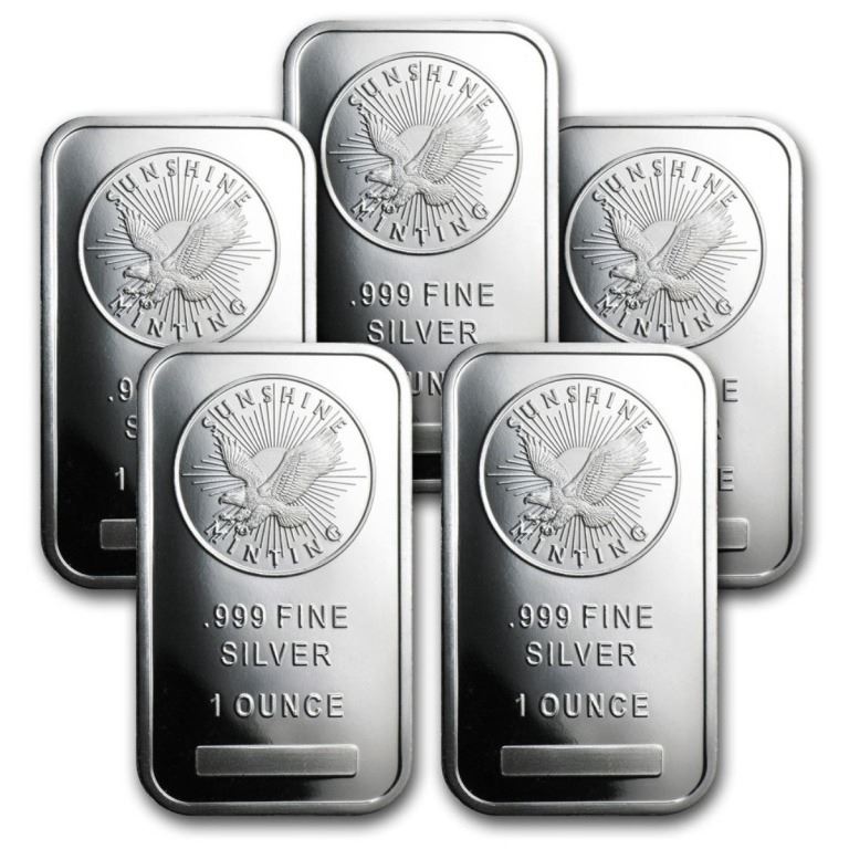 (5) 1 oz. Sunshine Mint Bars- .999 Pure