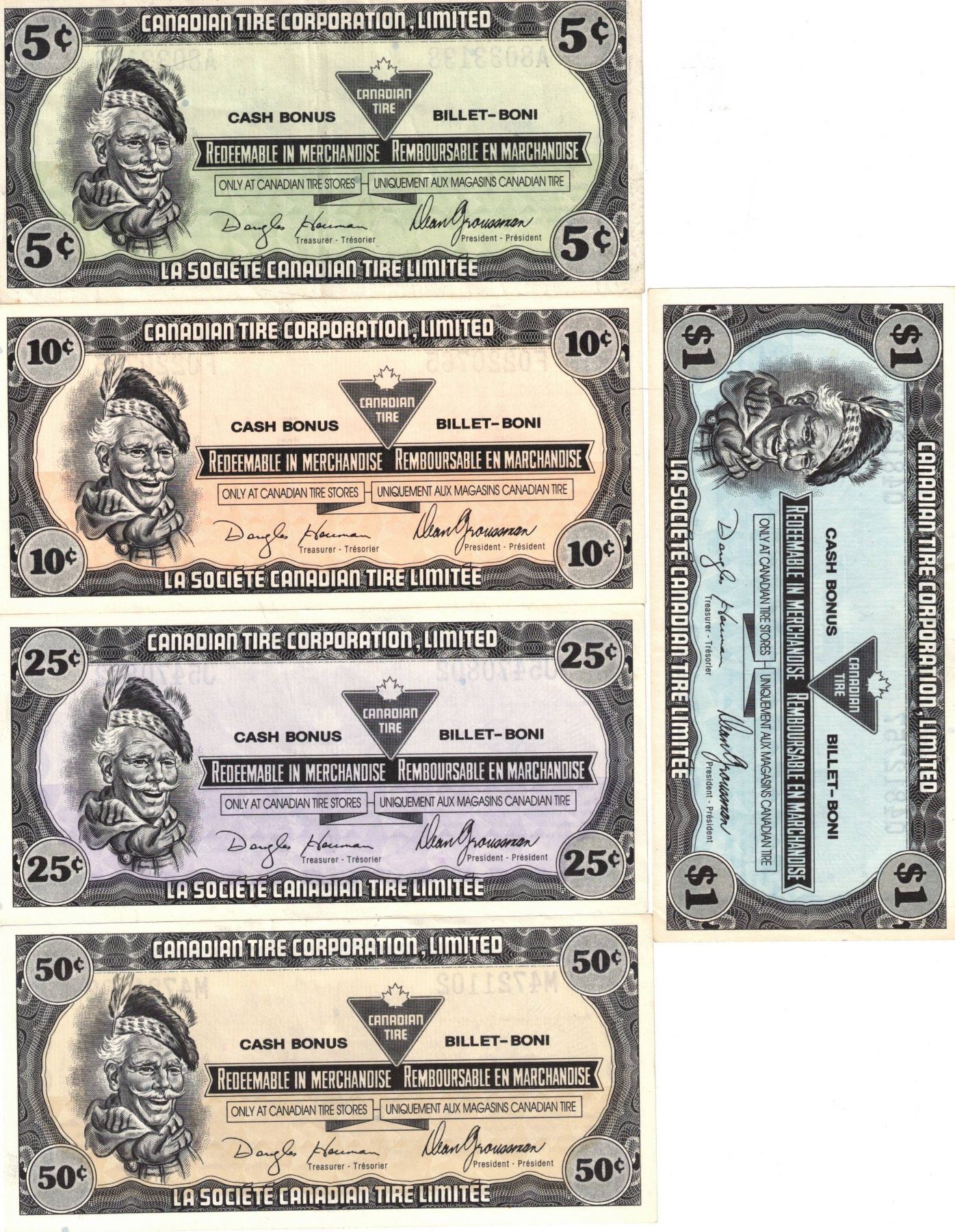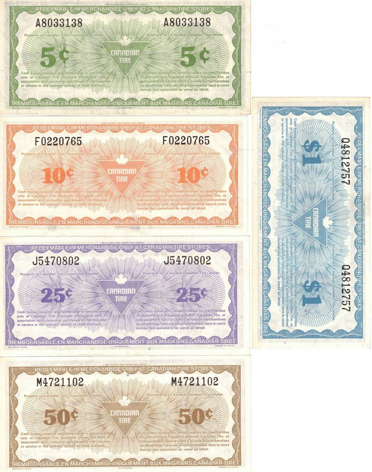 5¢ 10¢ 25¢ 50¢ $1.Canadian Tire Notes