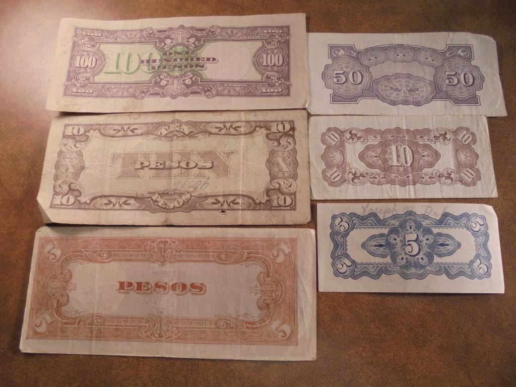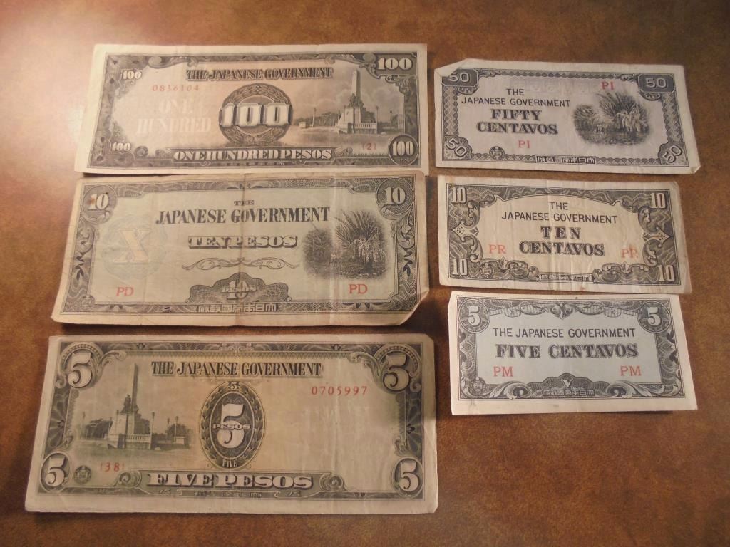 5,10 & 50 CENTAVOS, 5,10 & 100 PESOS WWII JAPANESE INVASION CURRENCY