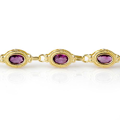 5.10 CTW Amethyst Bracelet 10K Yellow Gold ---- Luxury Designer Brand Bracelet Appraised Retail Price at $2,400 ---- SKU Number US13707 10k Yellow gold Bracelet Size is 7 Inches, Bracelet measuring approx. 7" x 3/16", weighing in total approx. 6.5 grams. Made in the USA and is stamped 10k, Main stone 5.1 carat total weight containing 8 pieces of Intense Translucent Purple color with AAA quality Oval shape cut Amethyst , Stone #2 carat total weight containing pieces of color with quality shape cut