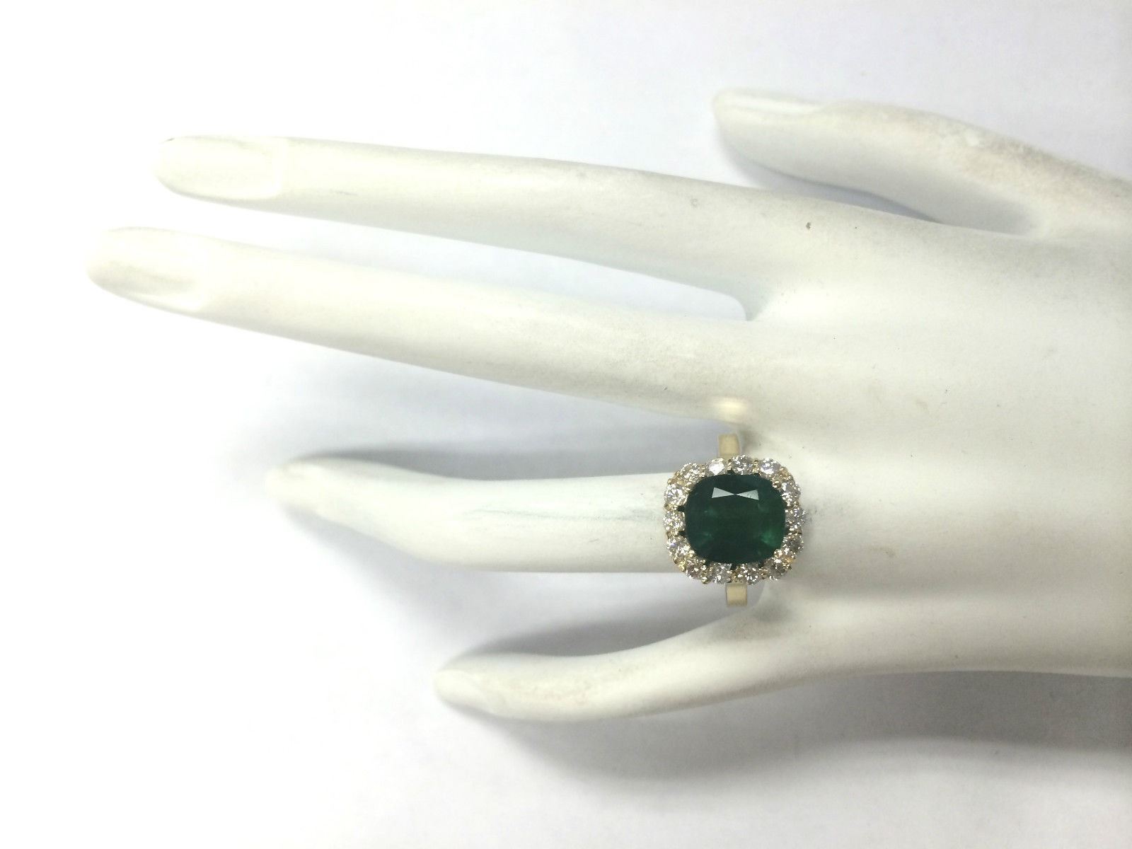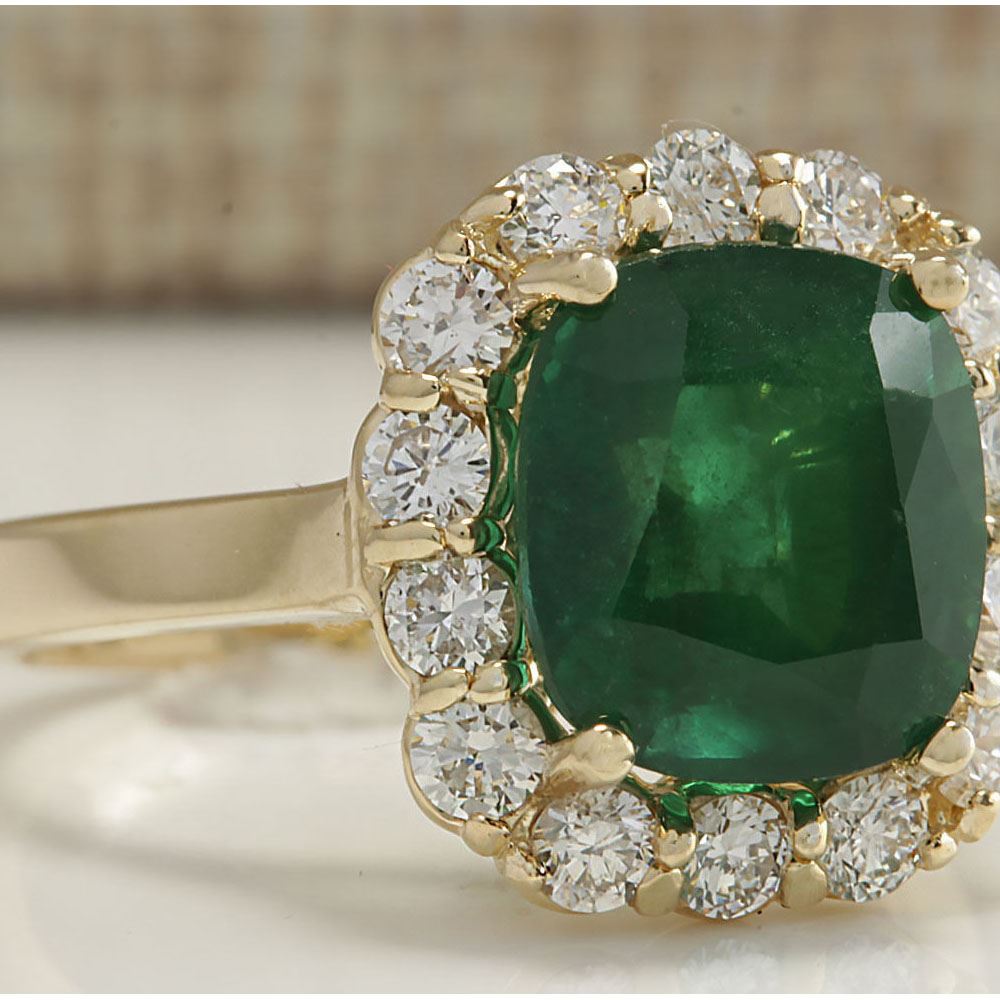 5.10 CTW Natural Emerald And Diamond Ring 14K Solid Yellow Gold